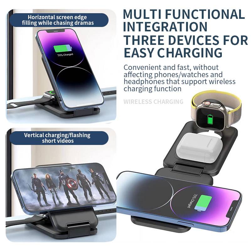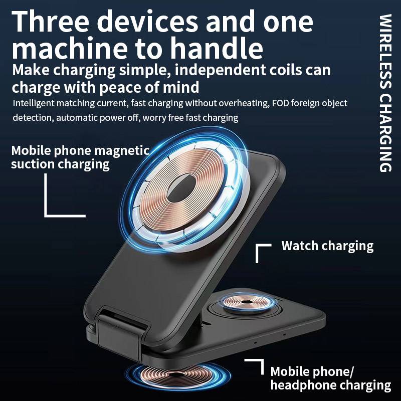 Three in one metal wireless charging base rotating 15W magnetic wireless charger bracket fast charging MX-CD12S