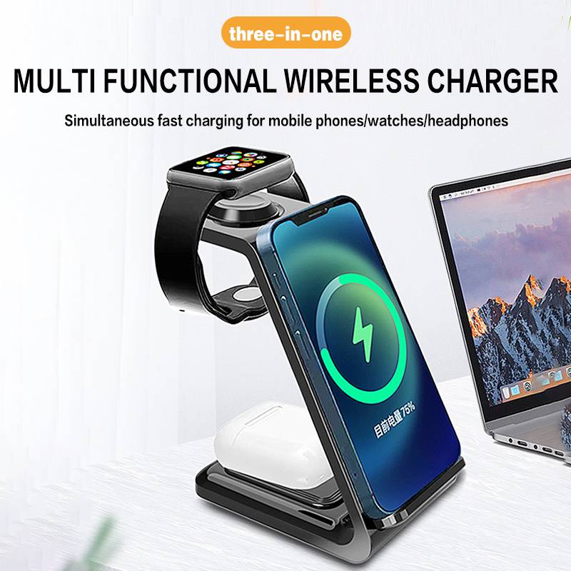 Three in one metal wireless charging base rotating 15W magnetic wireless charger bracket fast charging MX-CD12S