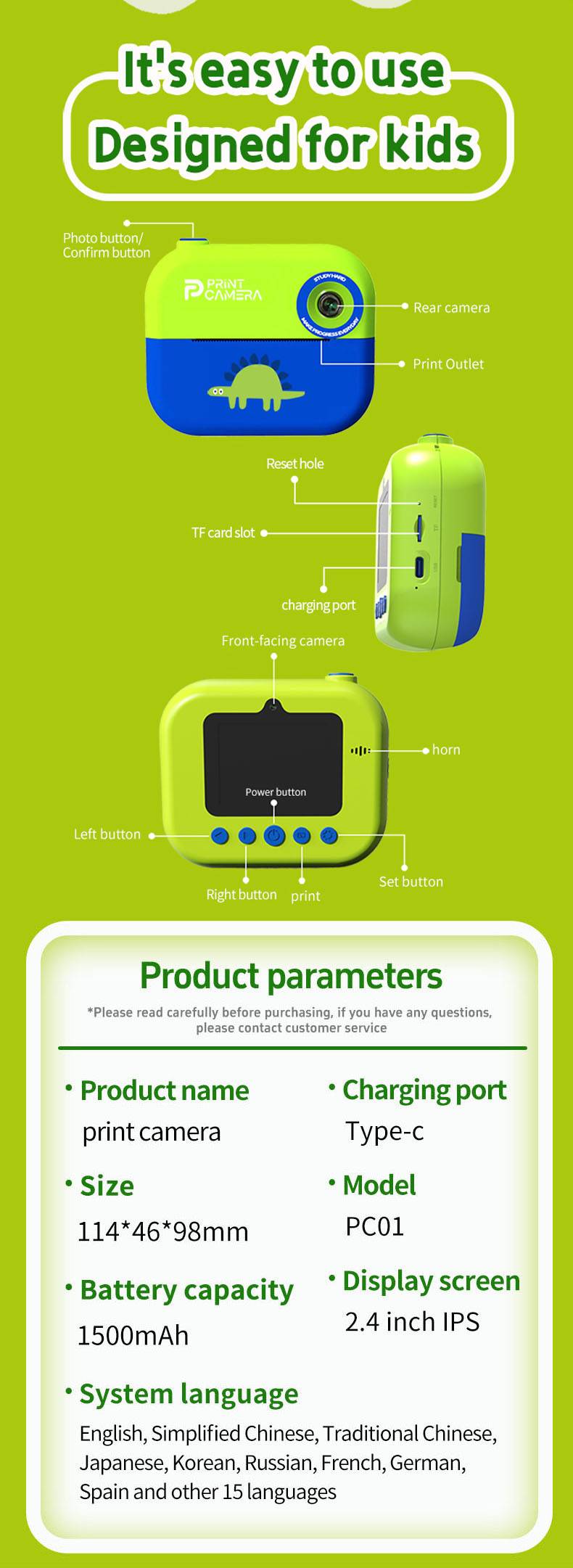 High definition cartoon mini camera vertical camera printing camera children`s camera pc02