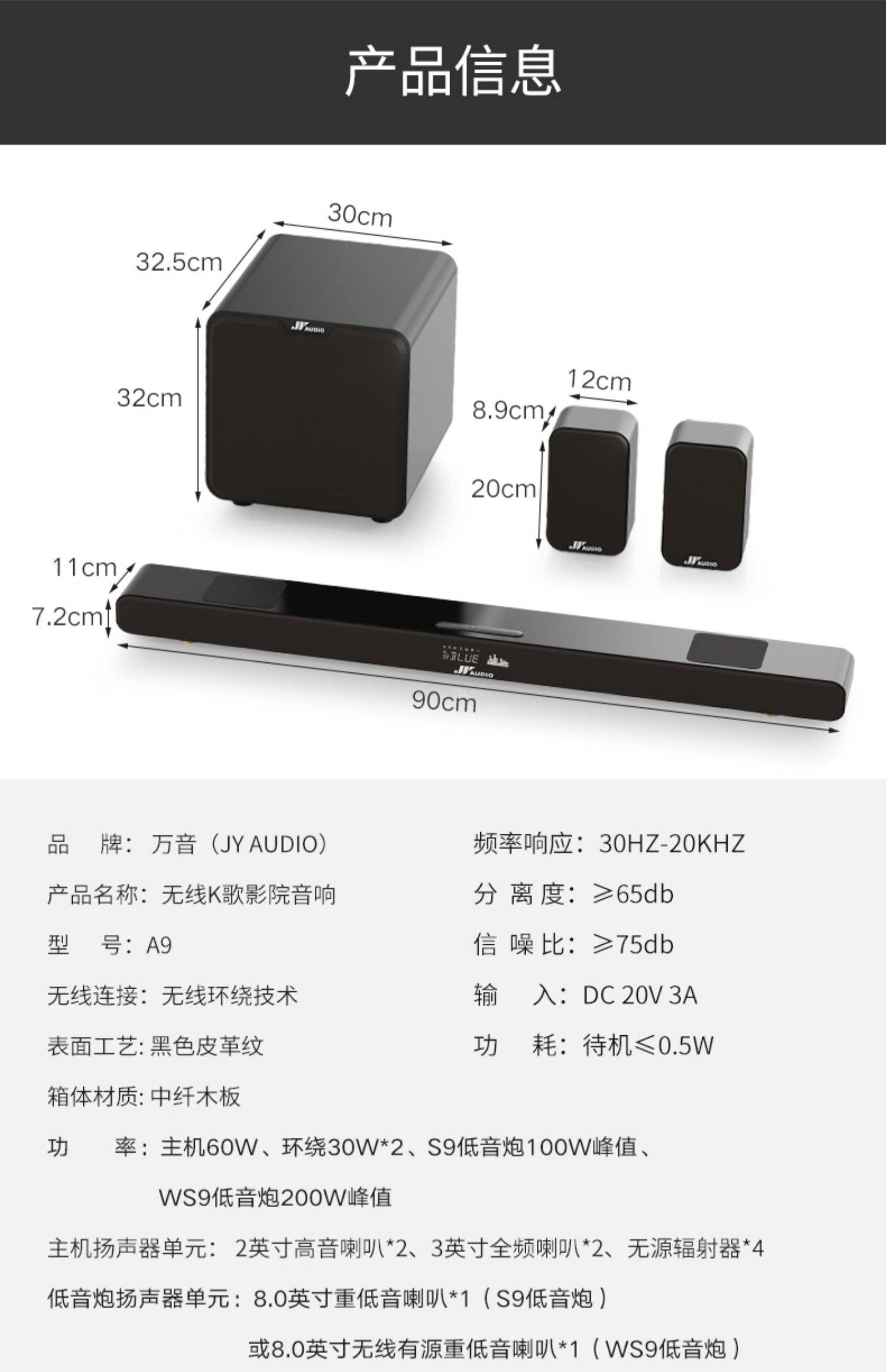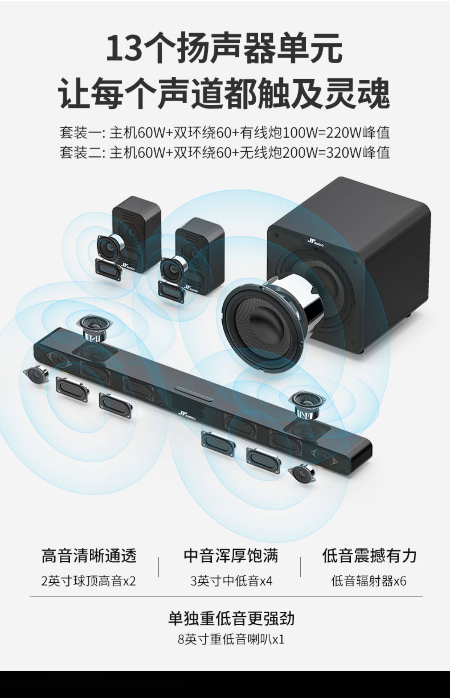 家庭影院杜比电视音响家用回音壁DTS硬解码蓝牙K歌全无线环绕音箱