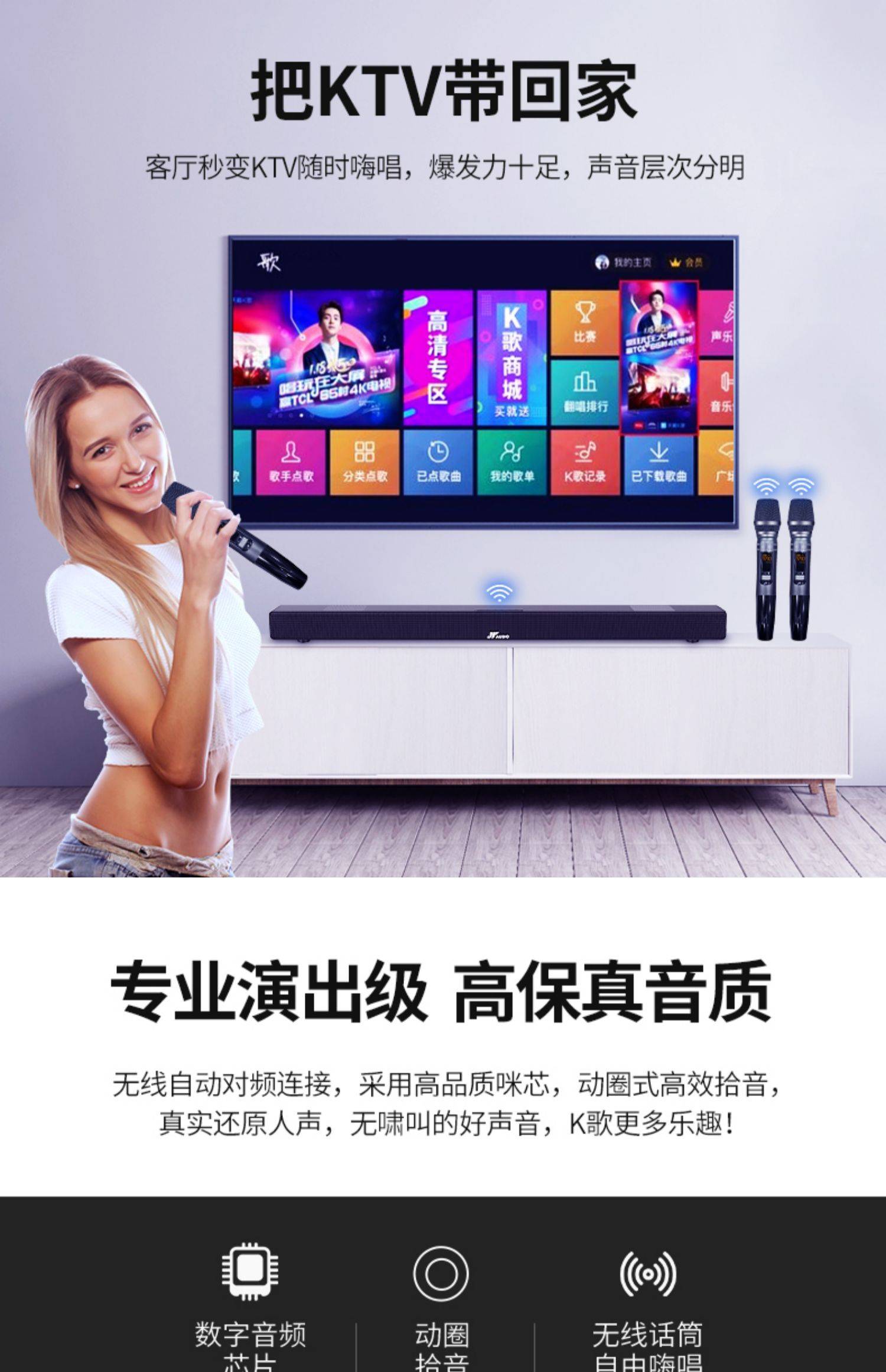 万音800K家庭音响k歌套装一体机无线麦克风家用客厅环绕高端影院