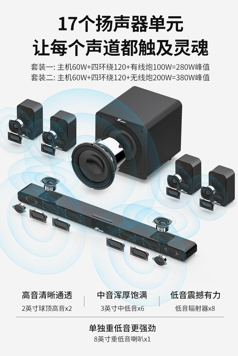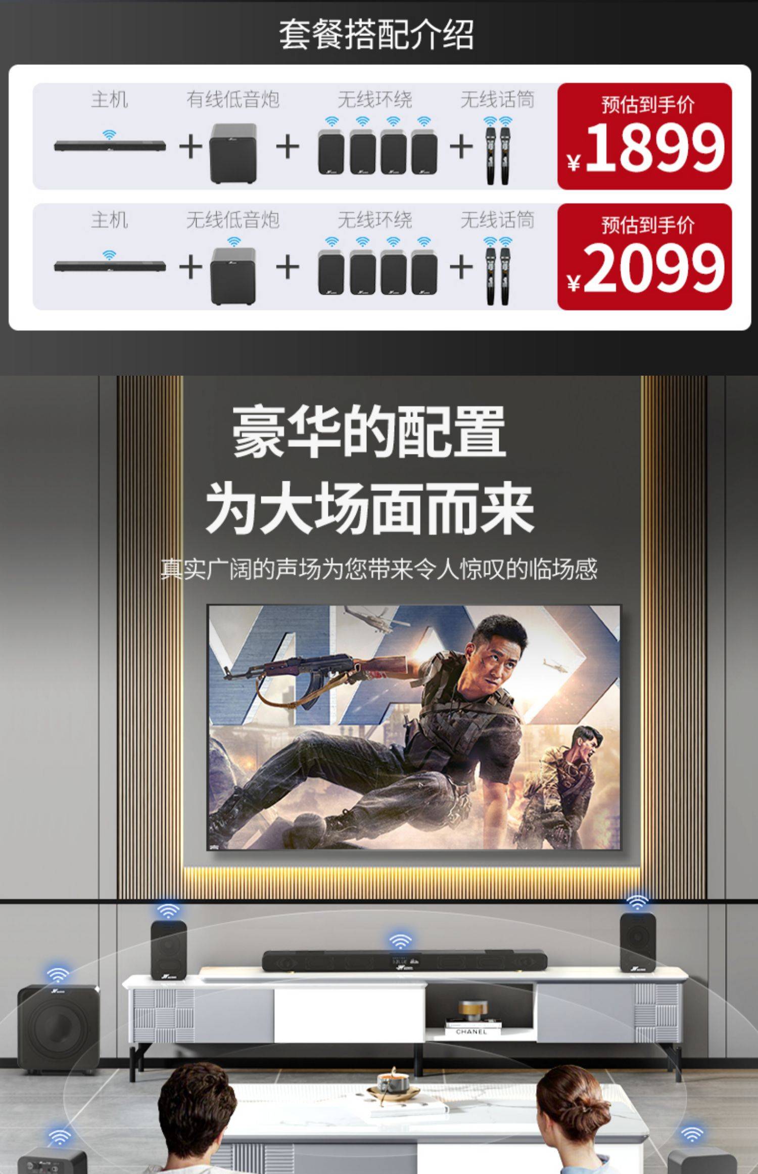 家庭影院杜比电视音响家用回音壁DTS硬解码蓝牙K歌全无线环绕音箱