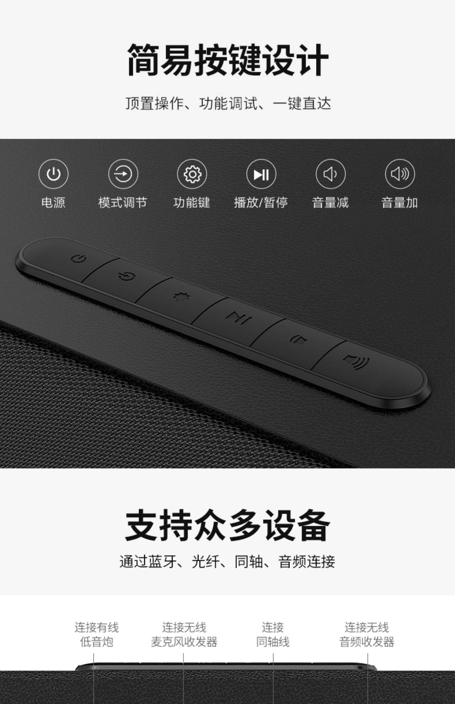 万音A9长条主机电视音响家用客厅蓝牙音箱万音回音壁音箱家庭影院
