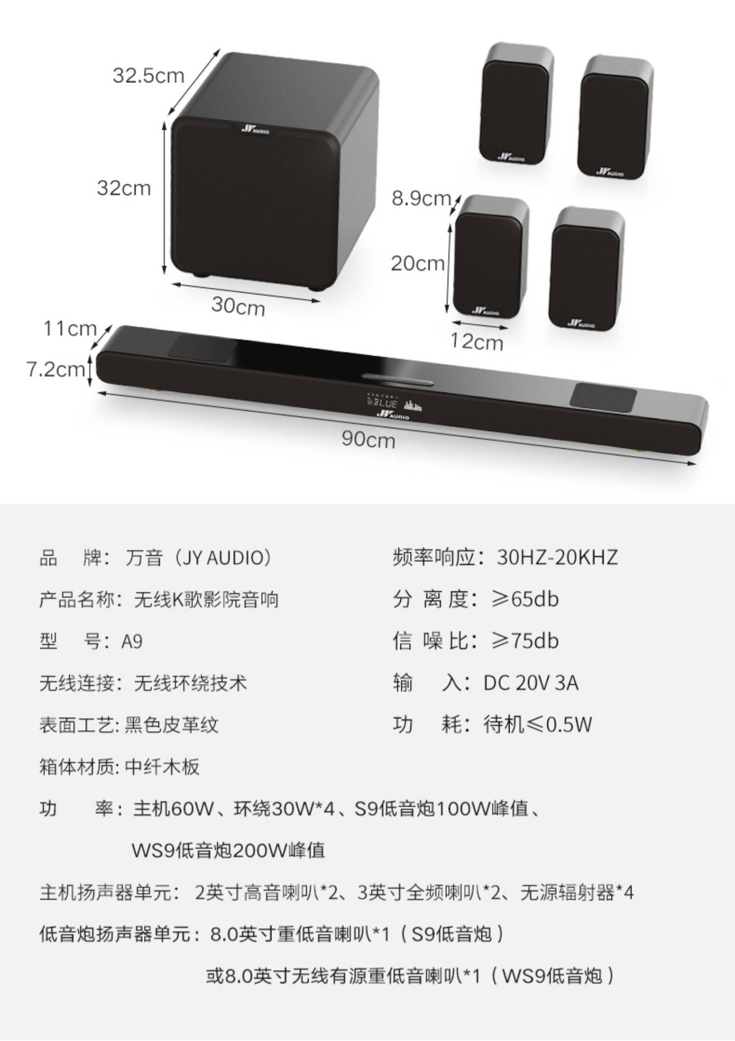 万音A9电视音响无线环绕家用K歌回音壁长条蓝牙7.2家庭影院音响套