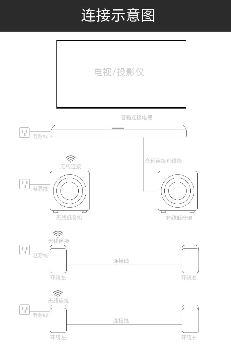 电视音响家用回音壁投影仪家庭影院全景声蓝牙套装无线环绕7.1箱
