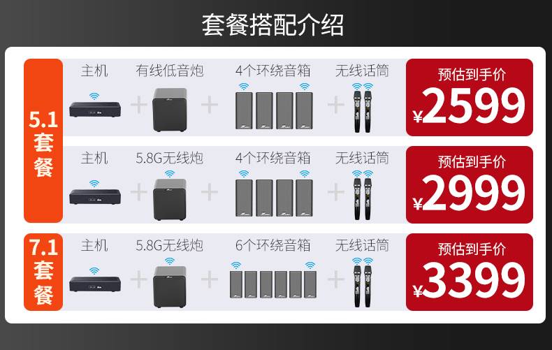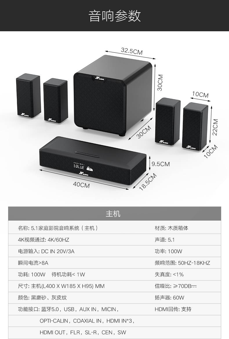 家庭影院杜比电视音响家用回音壁DTS硬解码蓝牙K歌全无线环绕音箱