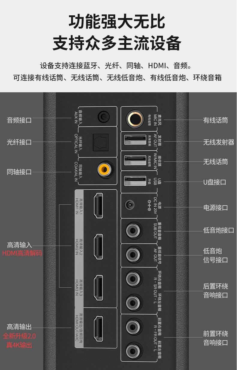 万音600K回音壁电视音响歌家庭影院环绕立体声音箱投影仪无线蓝牙