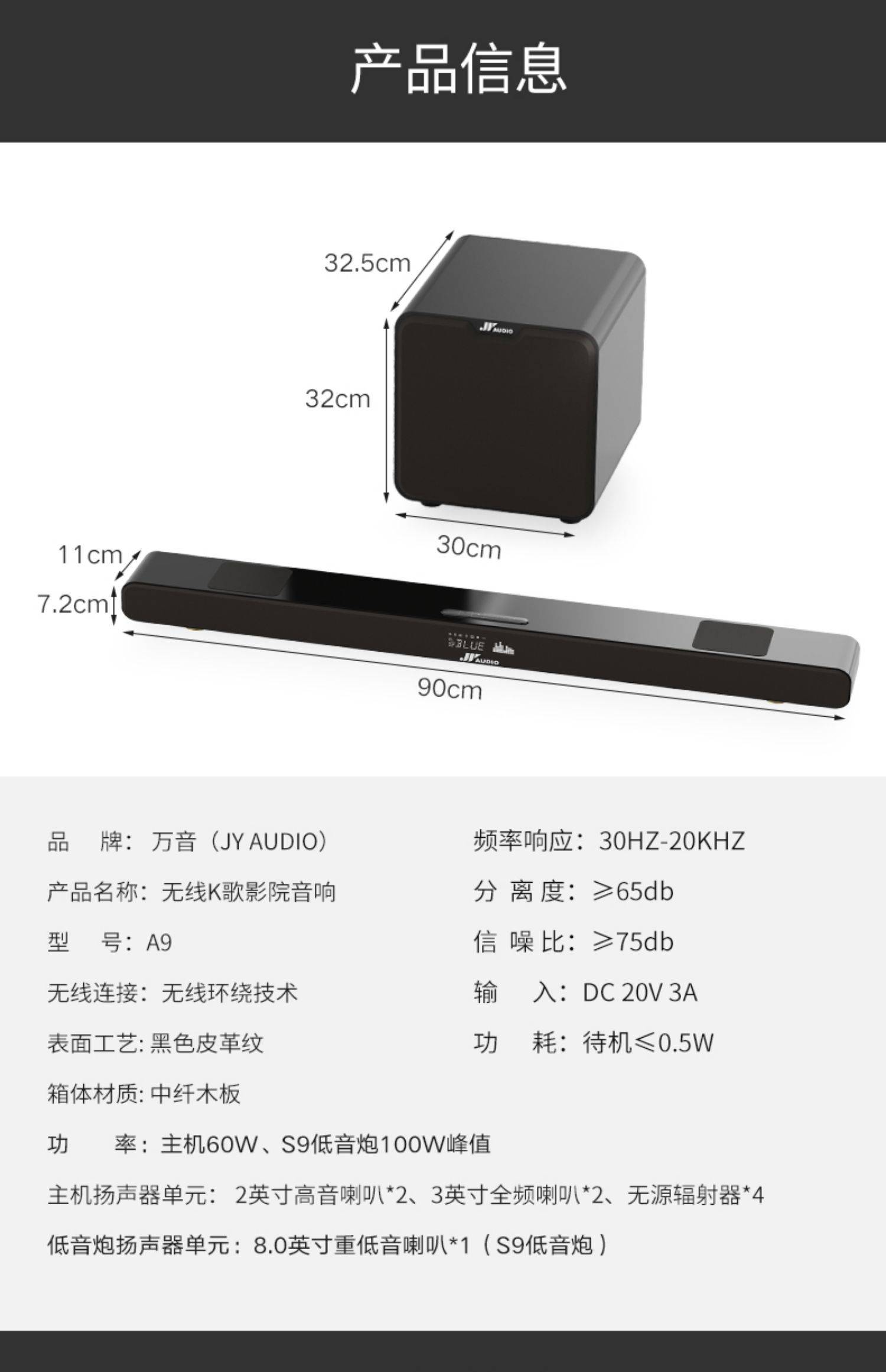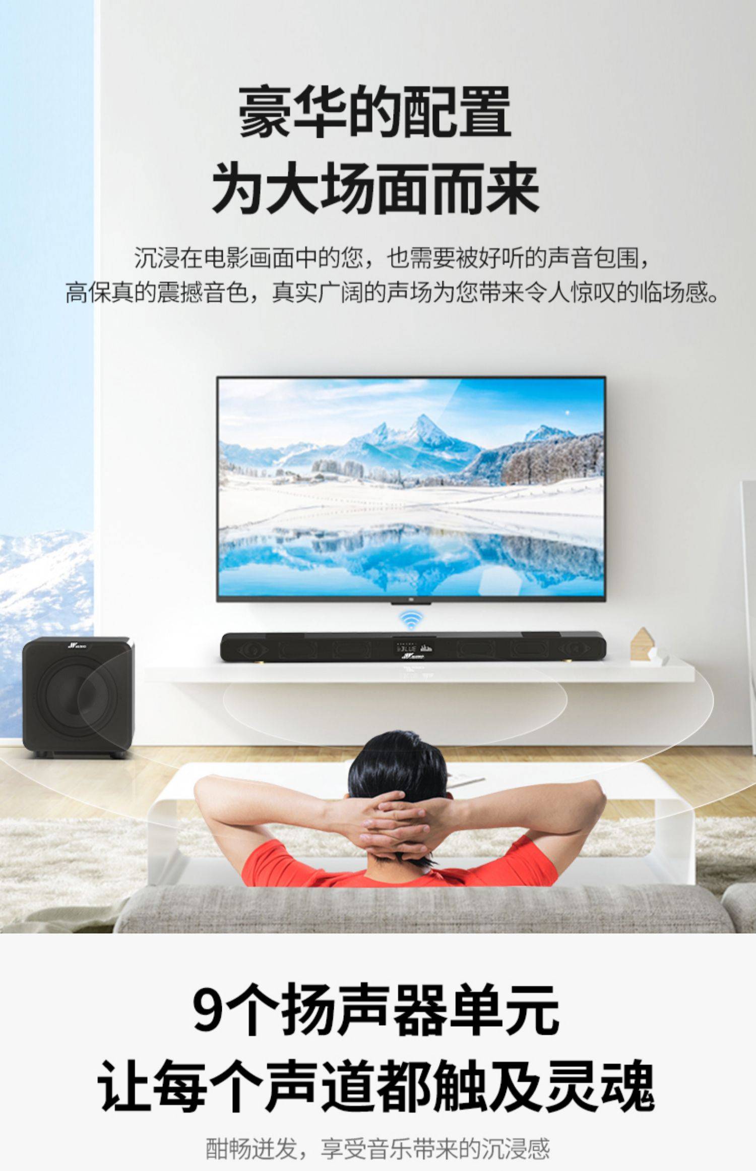 万音A9电视音响无线环绕家用K歌回音壁长条蓝牙7.2家庭影院音响套