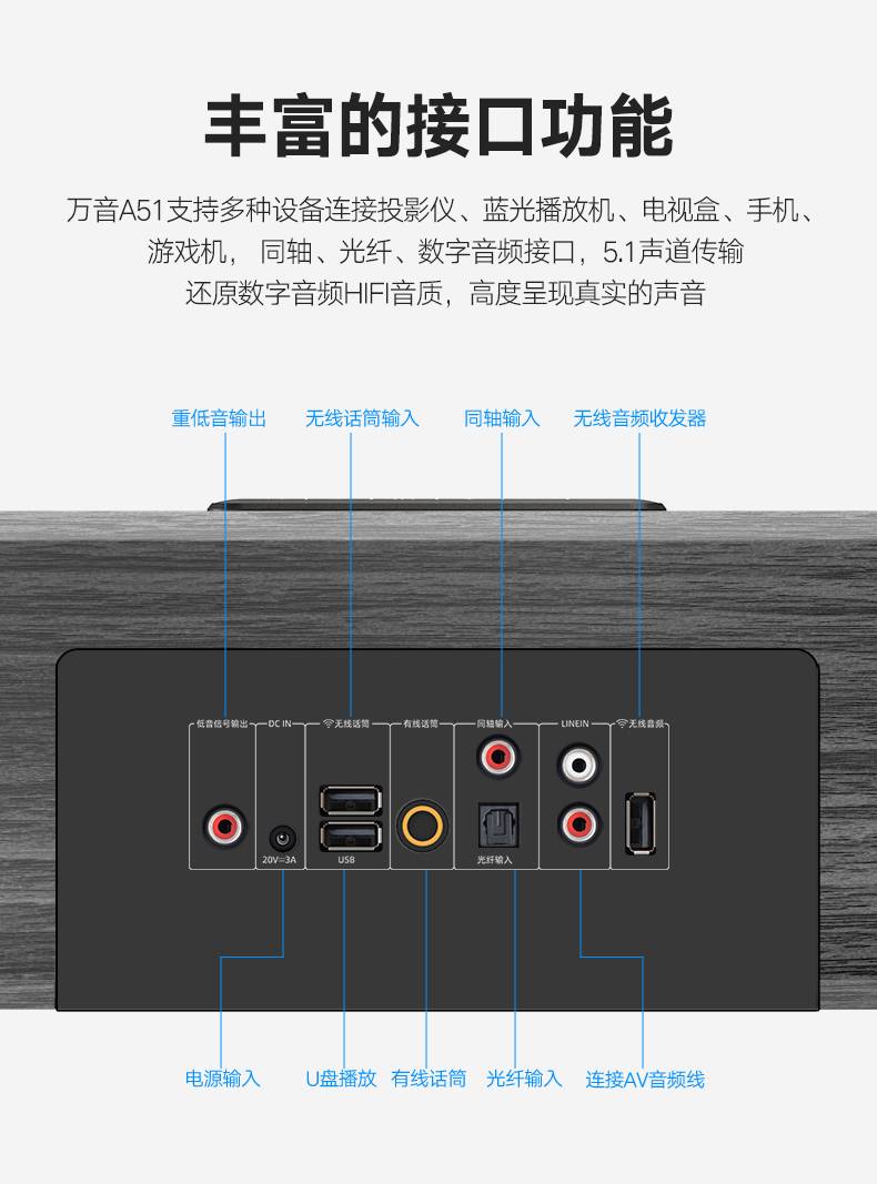 万音A10回音壁电视音响家庭影院套装无线环绕蓝牙家庭K歌外接音箱