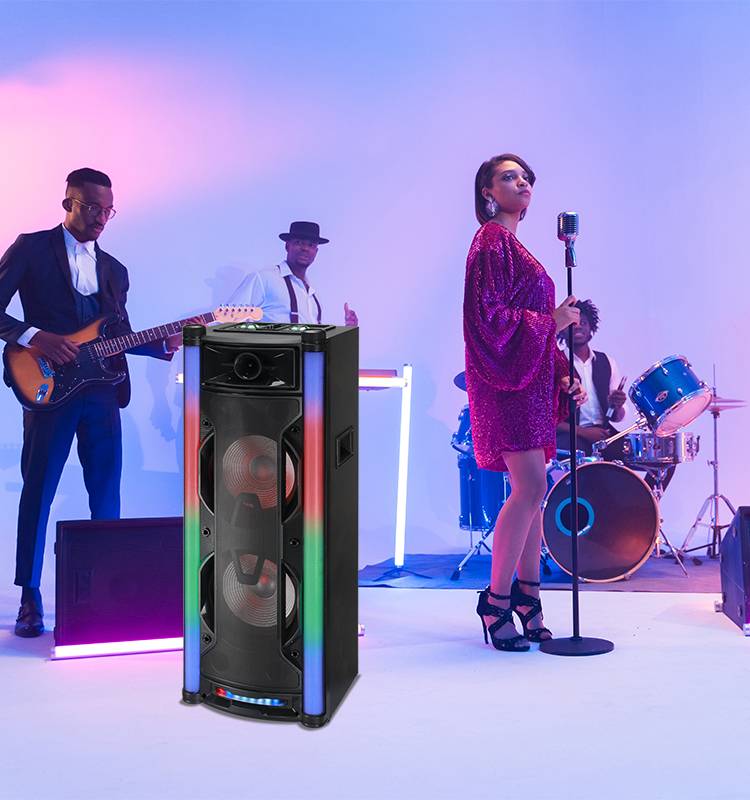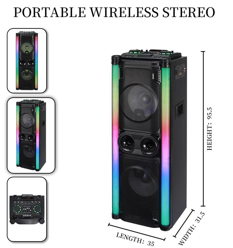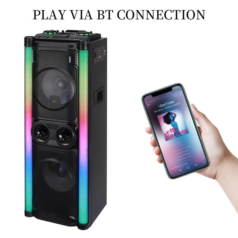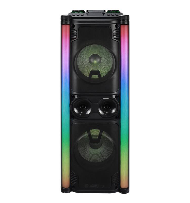 Professional Colorful Led Party Speaker Active Wireless Powerful Loudspeaker Wooden Karaoke Double 10 Inch Speaker Sound