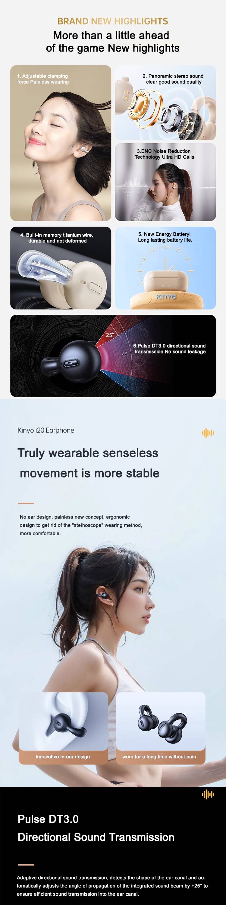 Bluetooth earphone clip on type i20