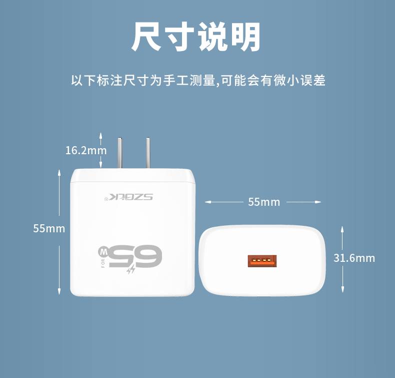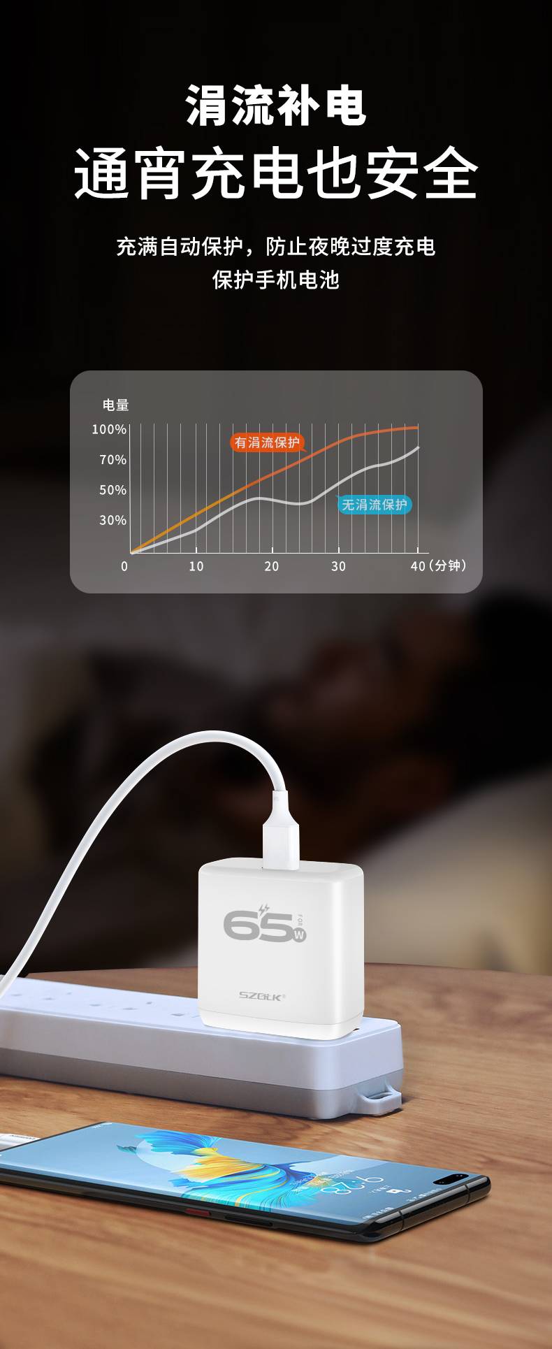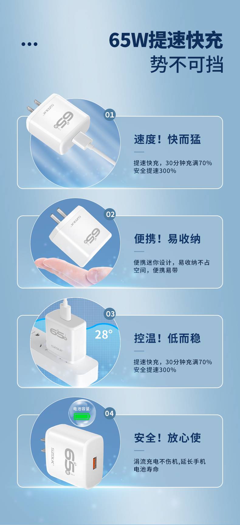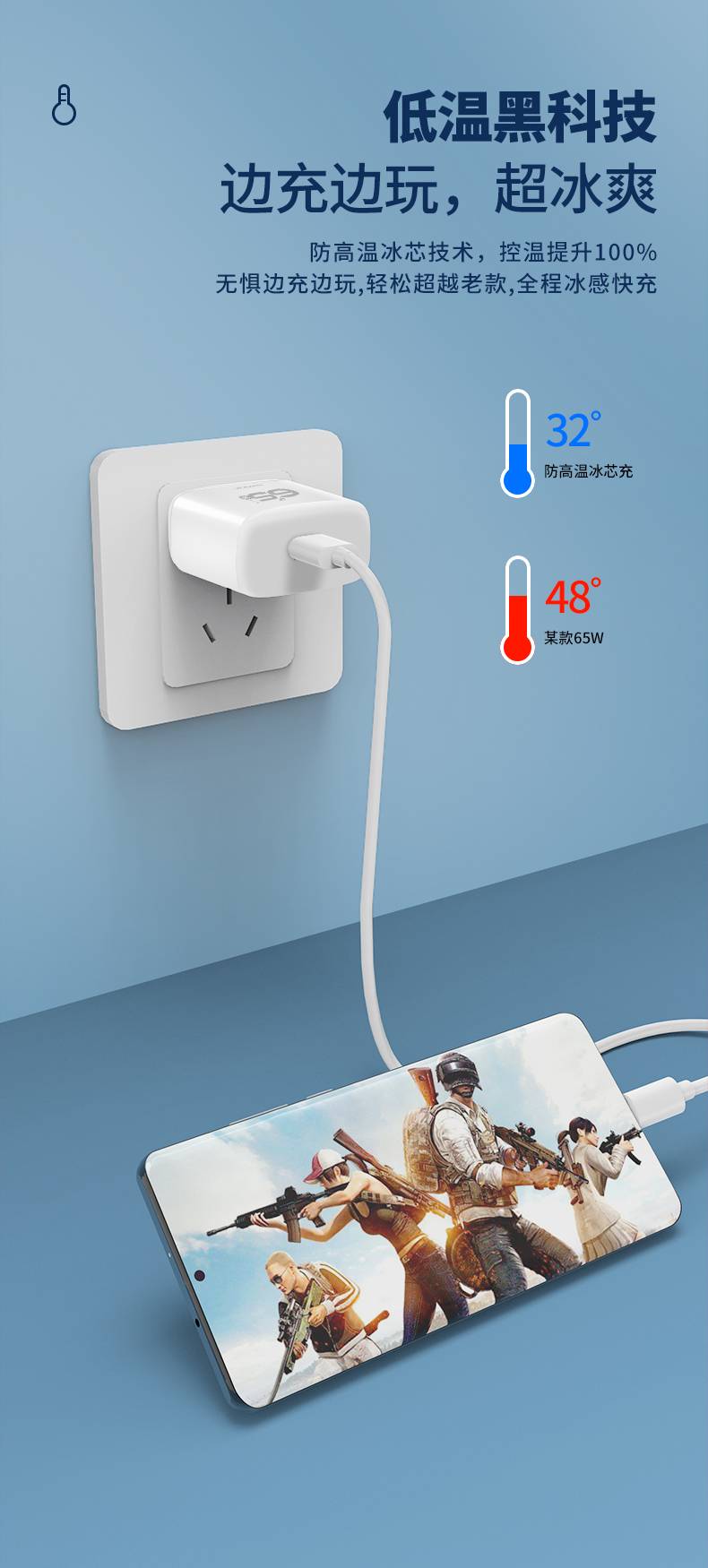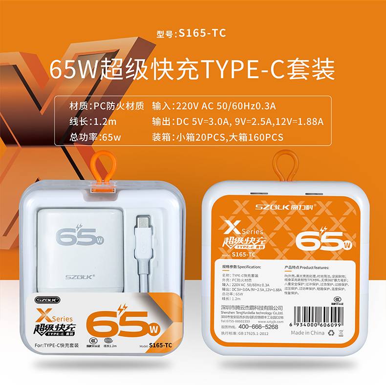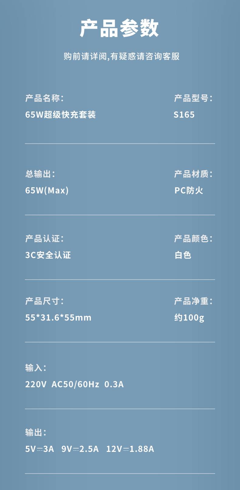 高力科S165 5V3A 65W手机充电器套装手机通用快充充电头