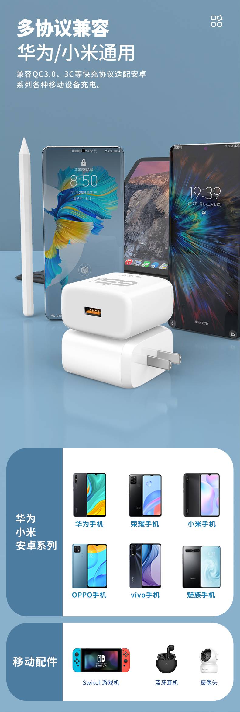 高力科S143 5V3.5A 22.5W手机充电器套装手机通用充电头