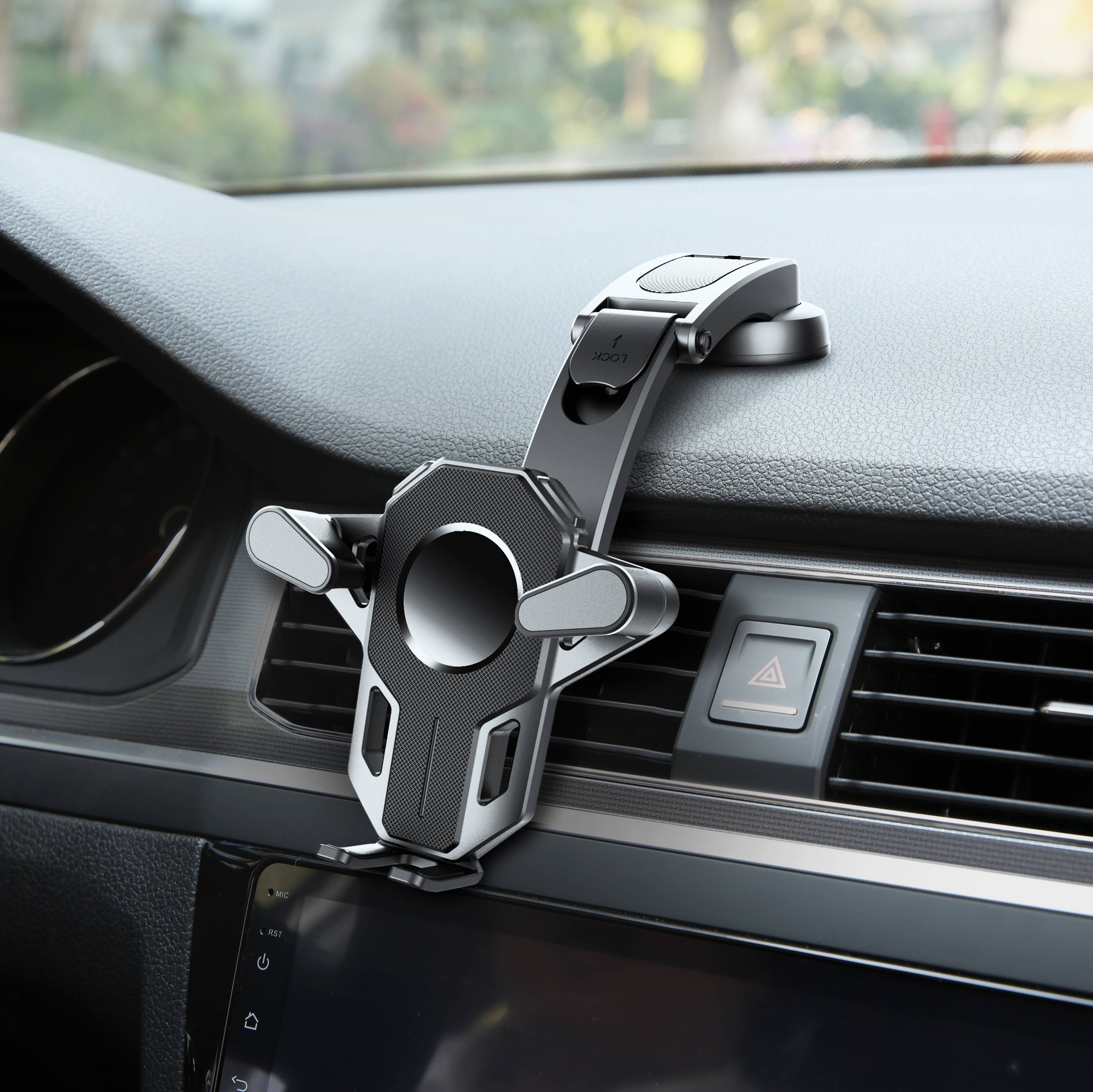 1.Innovative Patented design with Snap-in car mount holder,just Plug the Phone into the holder, and press the phone to the bottom,then the left and right arm will auto grasp the phone