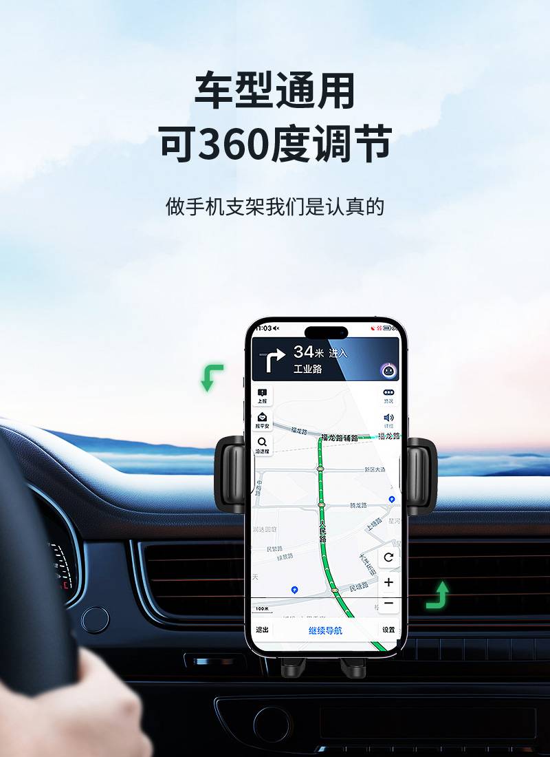 1.Innovative Patented design with Pulley Memory Function car mount holder, just put phone through pulley by adjusting the suitable width size of two arms.