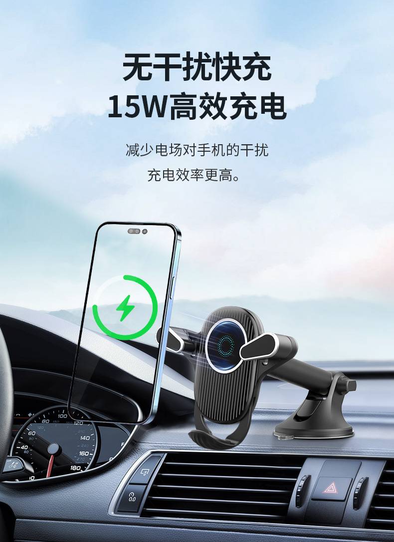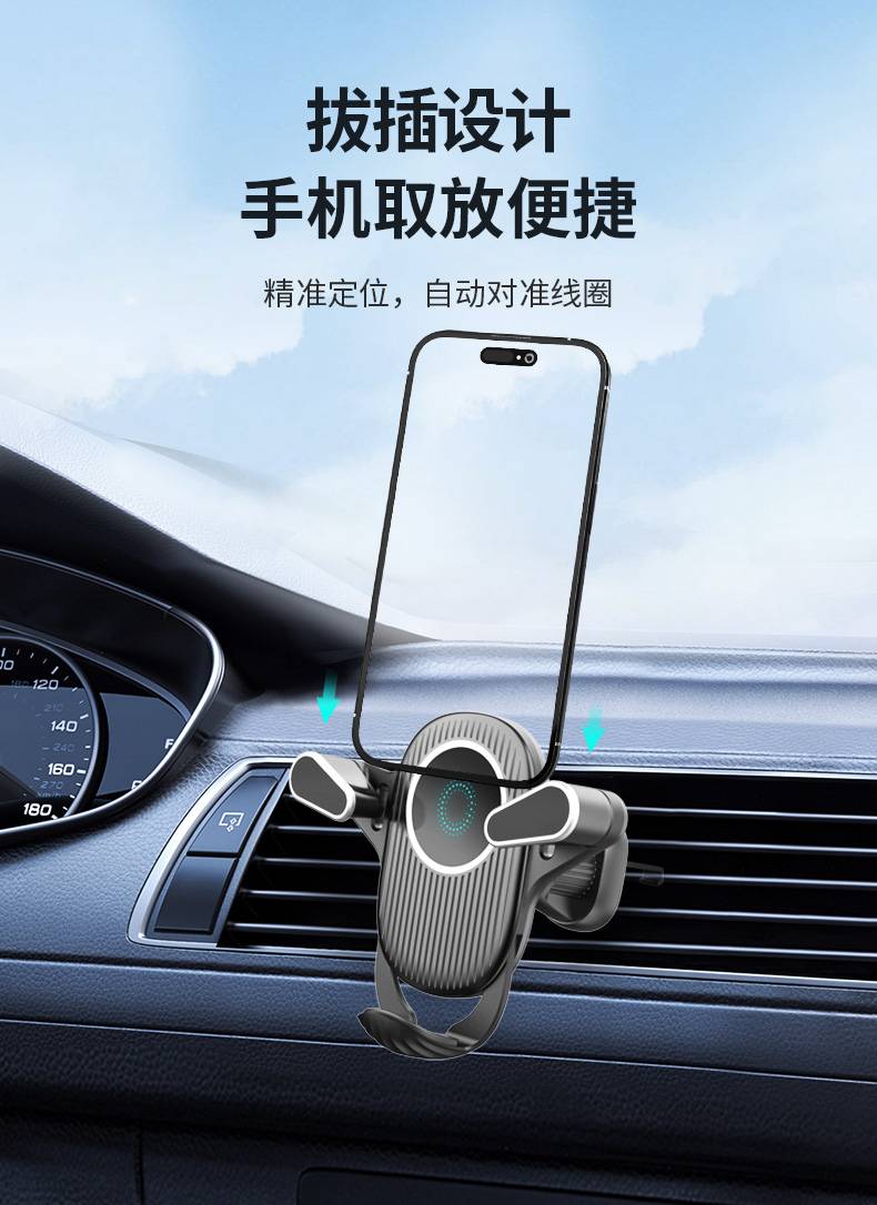 1.Innovative Patented design with Snap-in car mount holder,just Plug the Phone into the holder, and press the phone to the bottom,then the left and right arm will auto grasp the phone 2.Designed for iPhone 15/14/13/12 series and other Qi mobile device