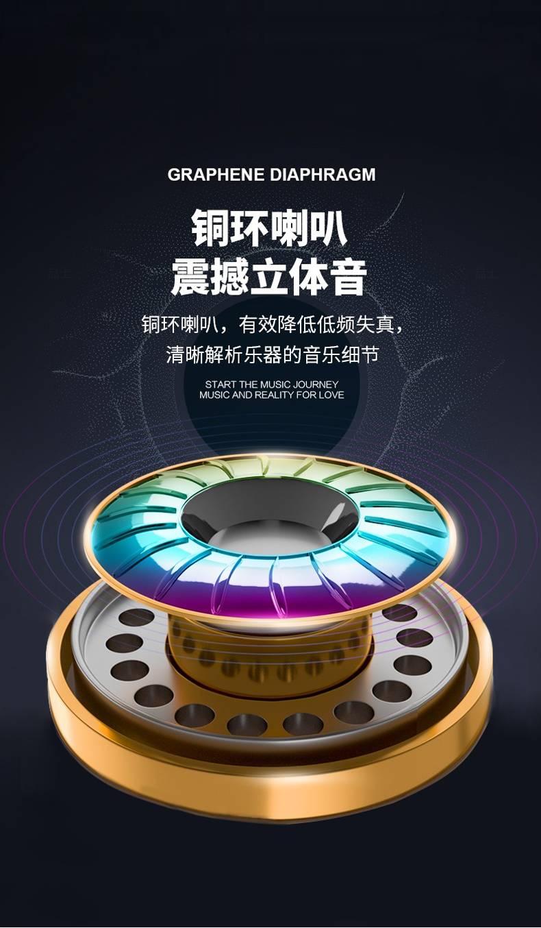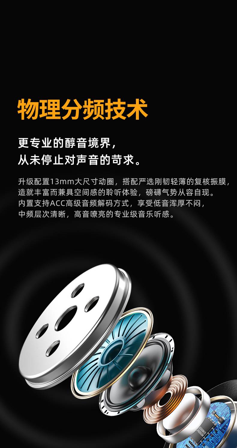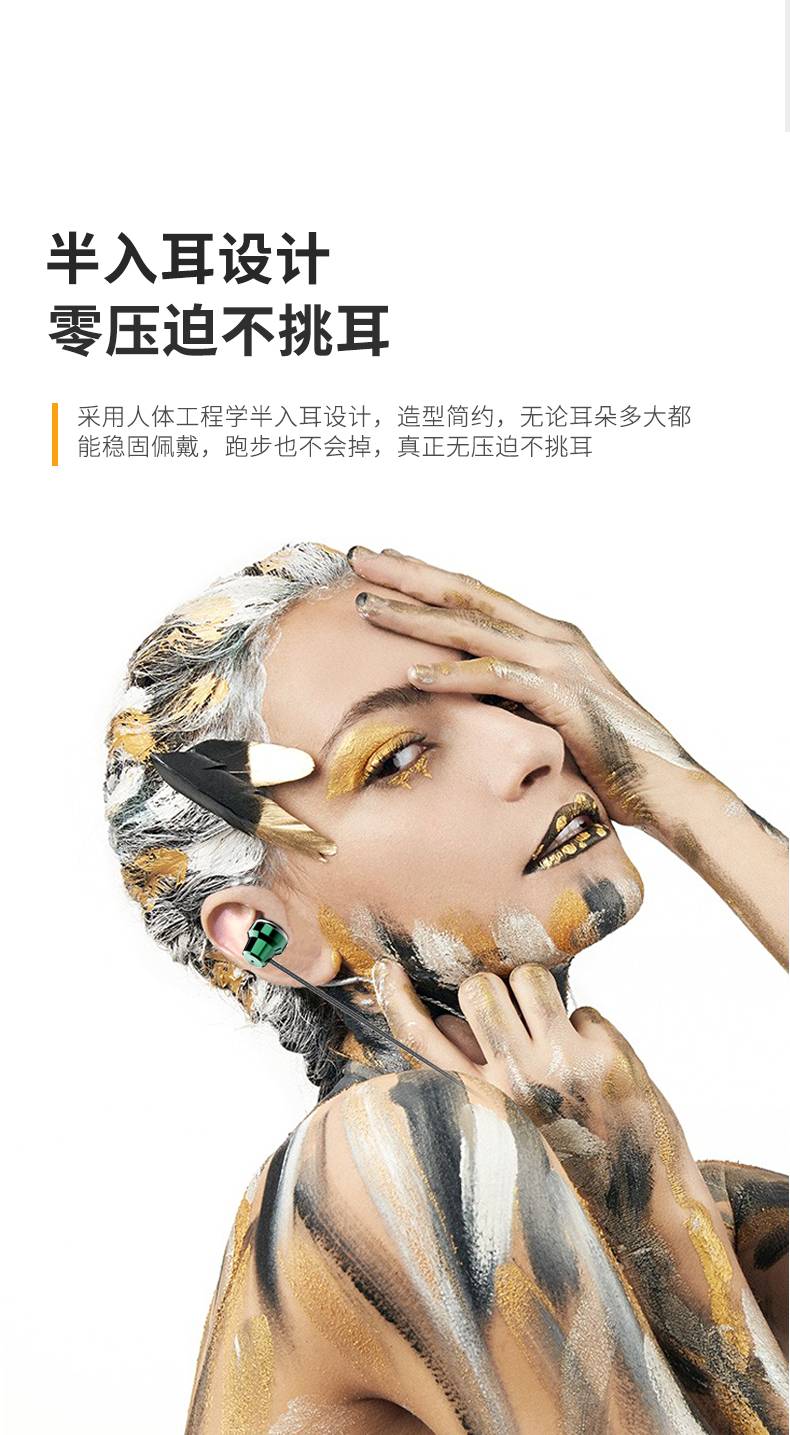 5,人体工学侧入耳设计,定制单元发声,完美时尚佩戴舒适;