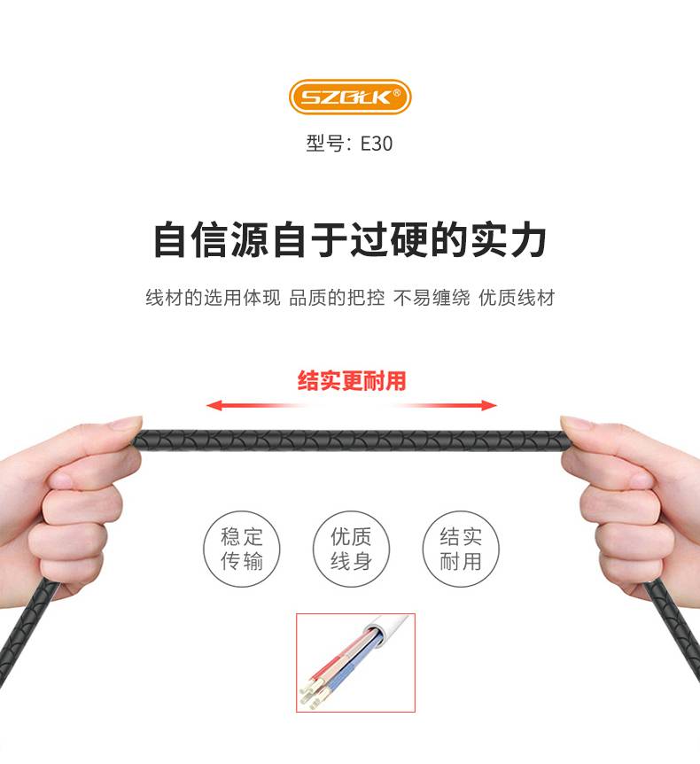 1,耳机线:TPE高弹线香水线;线长2.2*6*1.2米