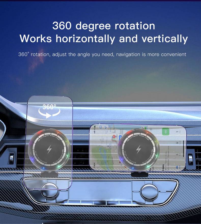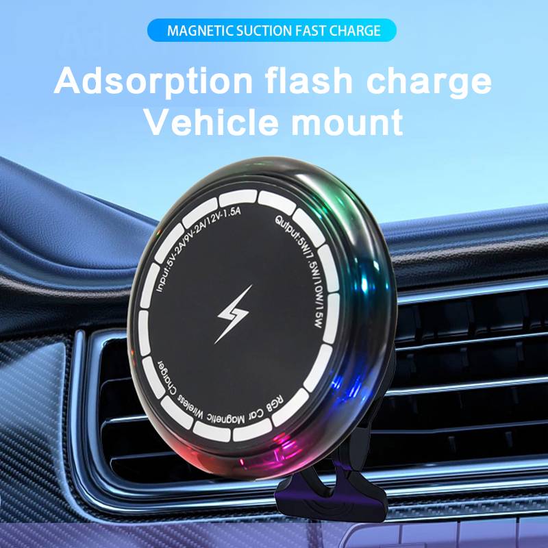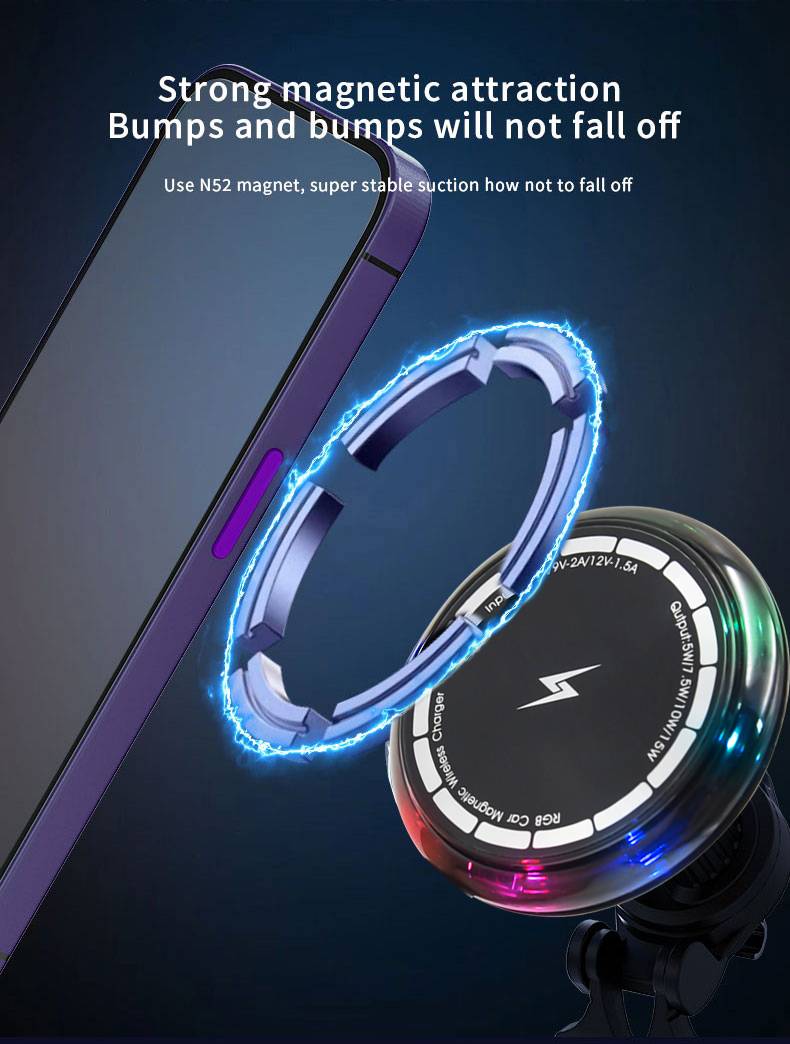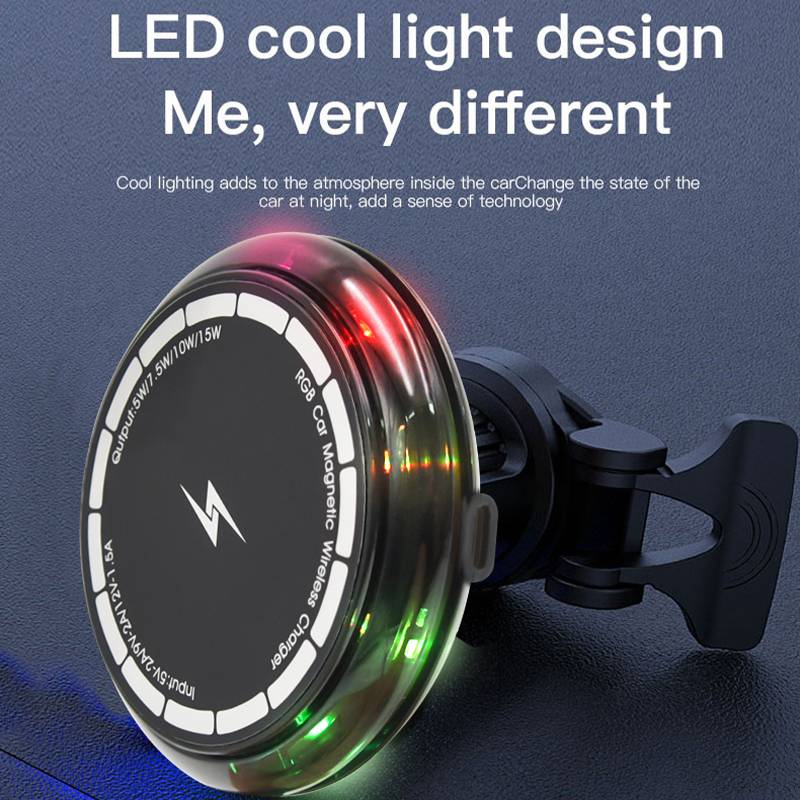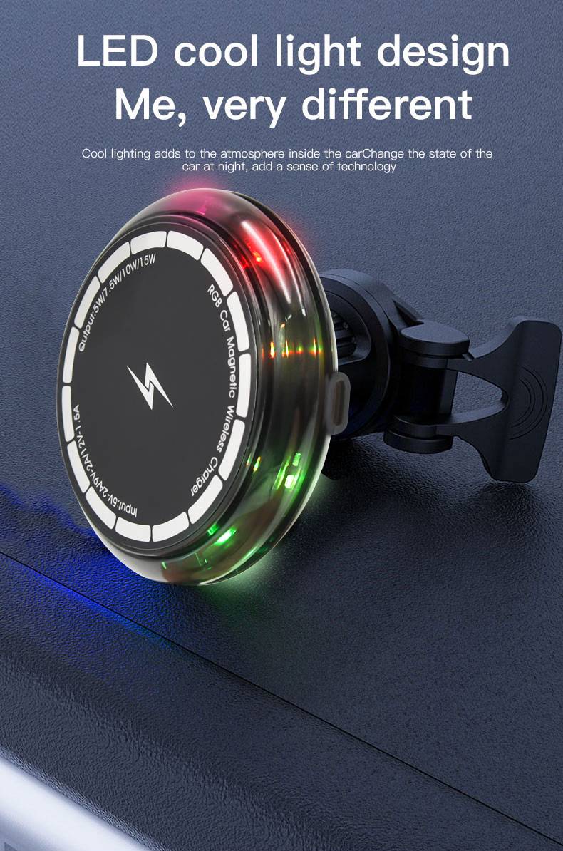 RGB Light Transparent Design 15W Magnet Car Charger Air Vent