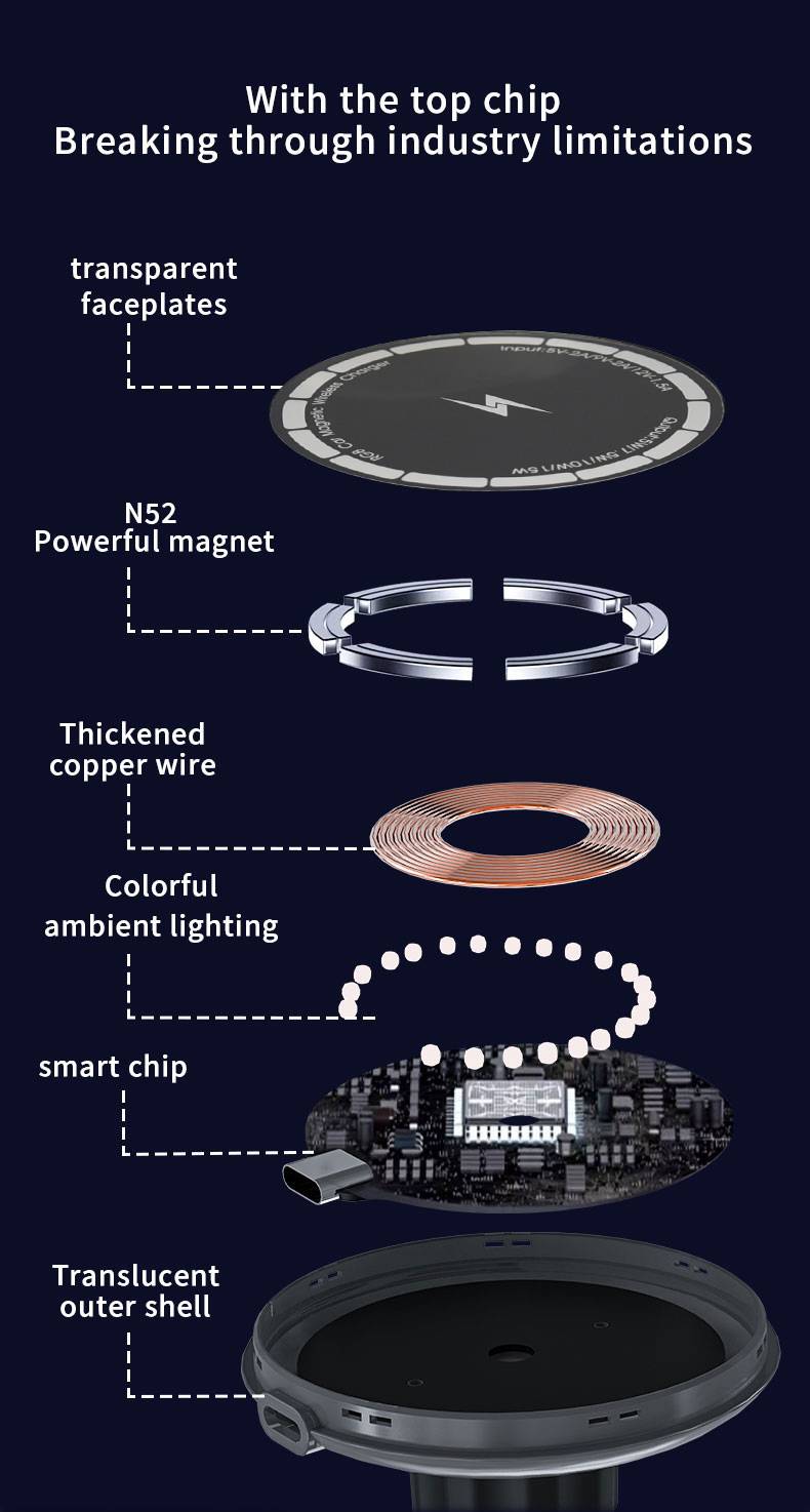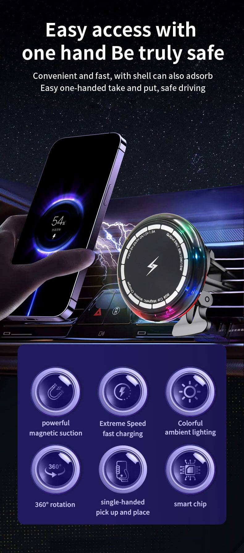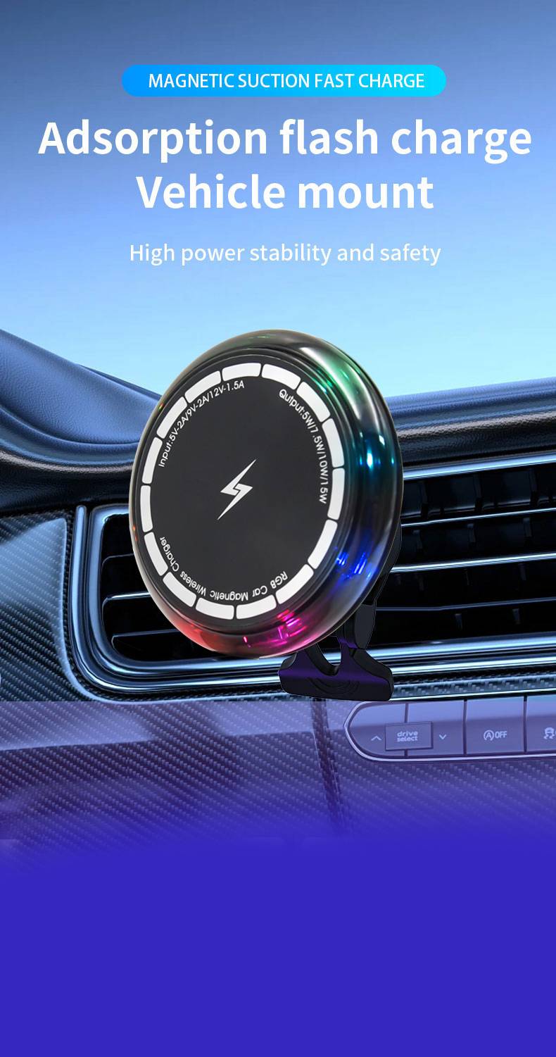 RGB Light Transparent Design 15W Magnet Car Charger Air Vent