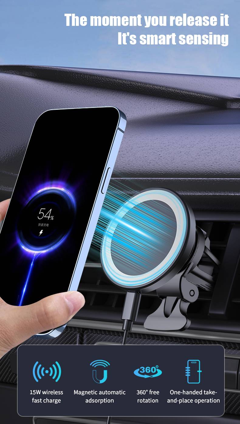New 15W magnetic suction car wireless charging car air outlet phone holder