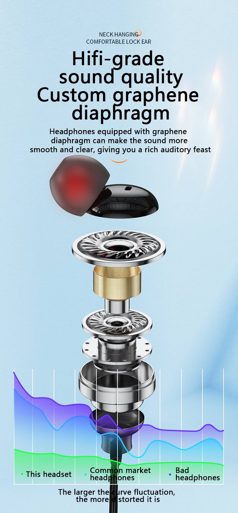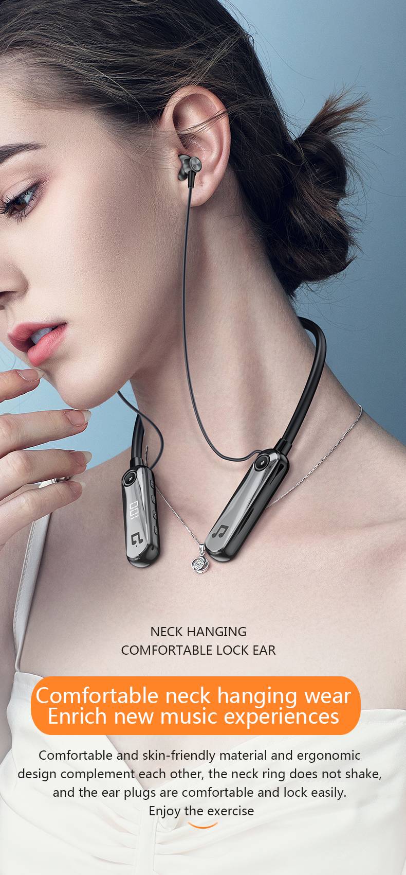 Newly upgraded magnetic neck hanging headphones with ear shells Y9J