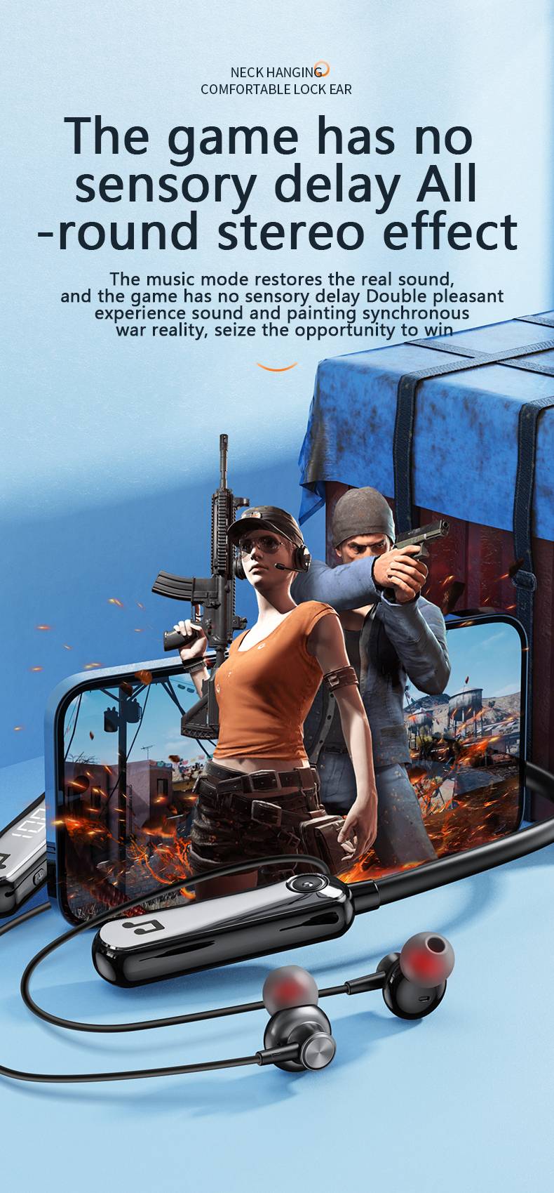 Neck hanging Bluetooth earphones EQ with digital noise reduction wireless noise reduction with ear feedback GYM-740