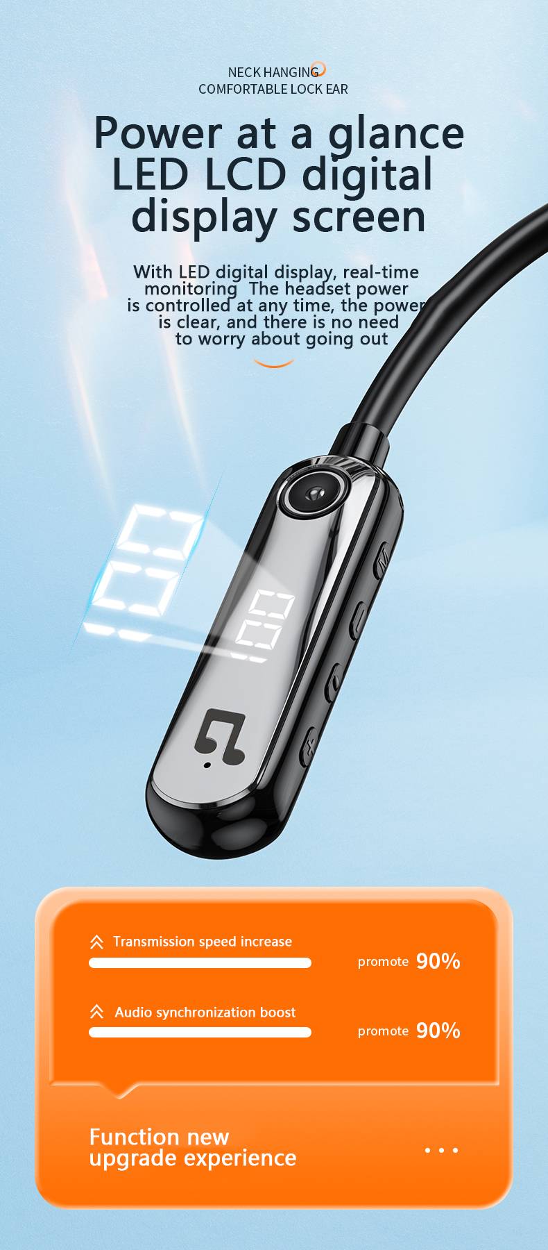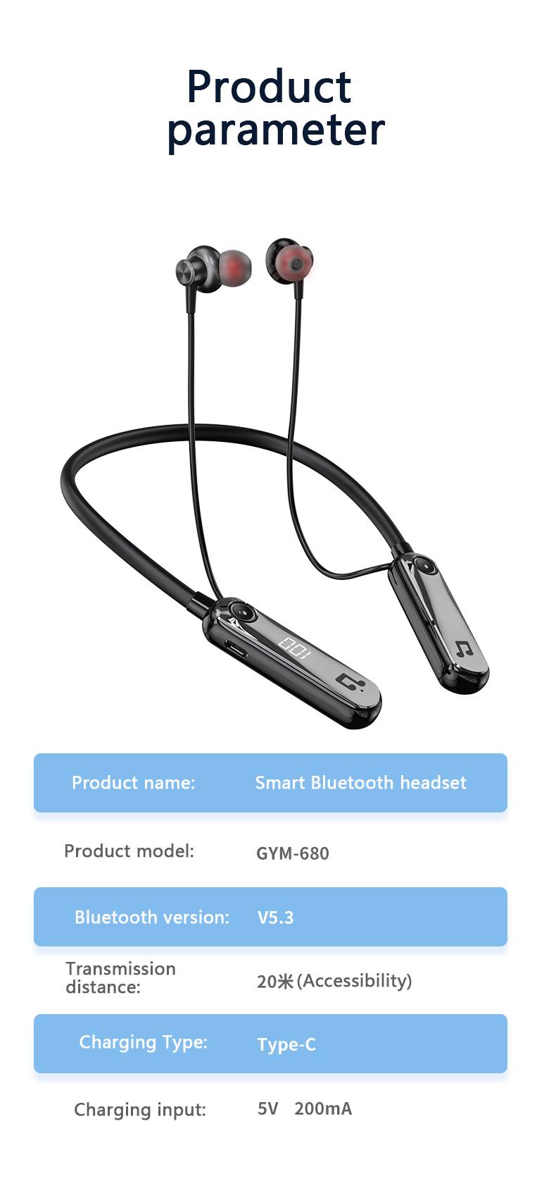 GYM-959 In ear LCD digital display wireless Bluetooth earphones with long battery life and high-quality hanging neck spo