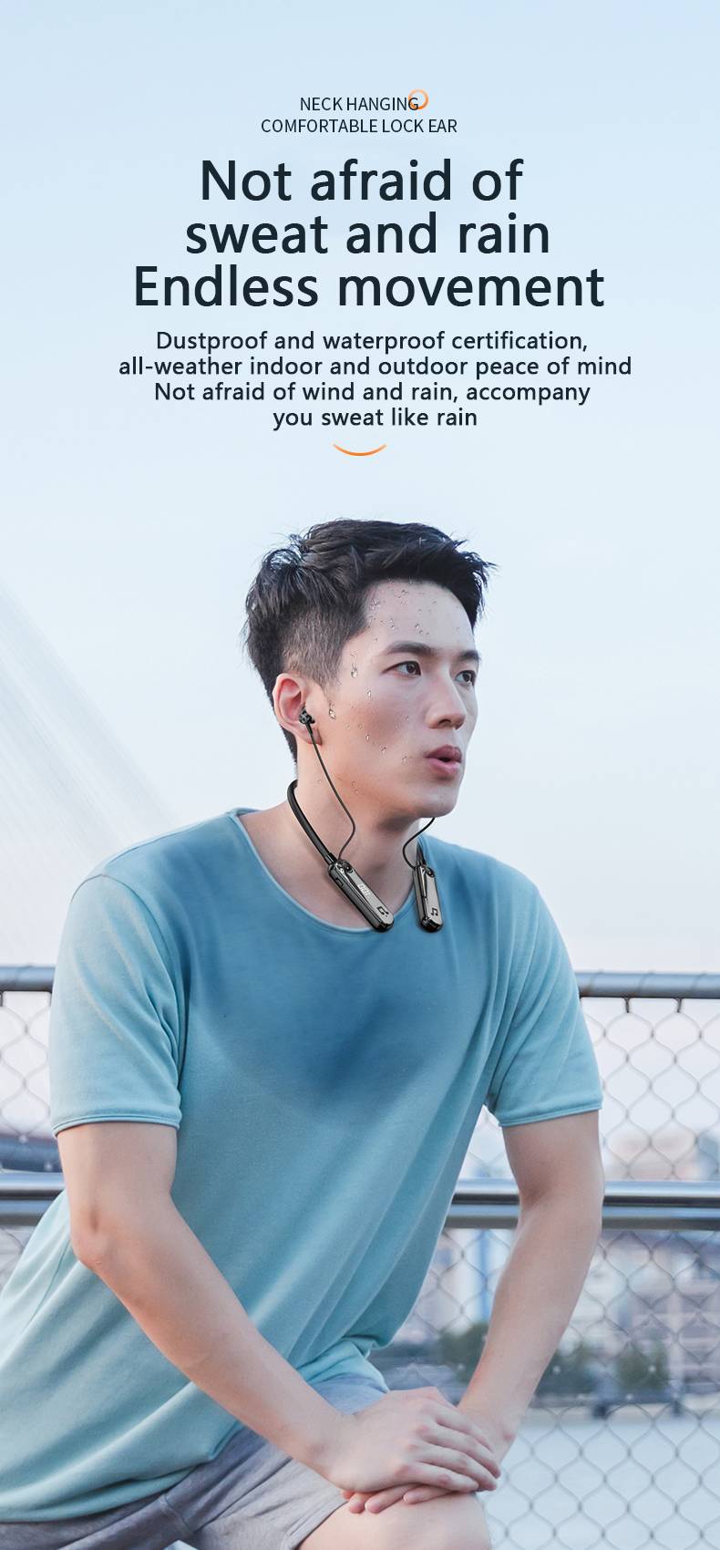 Wireless neckband Bluetooth earphones for sports, with ultra long battery life and large capacity