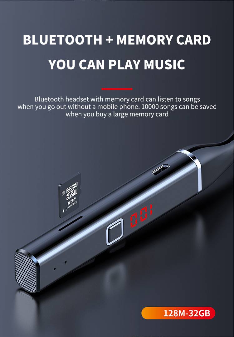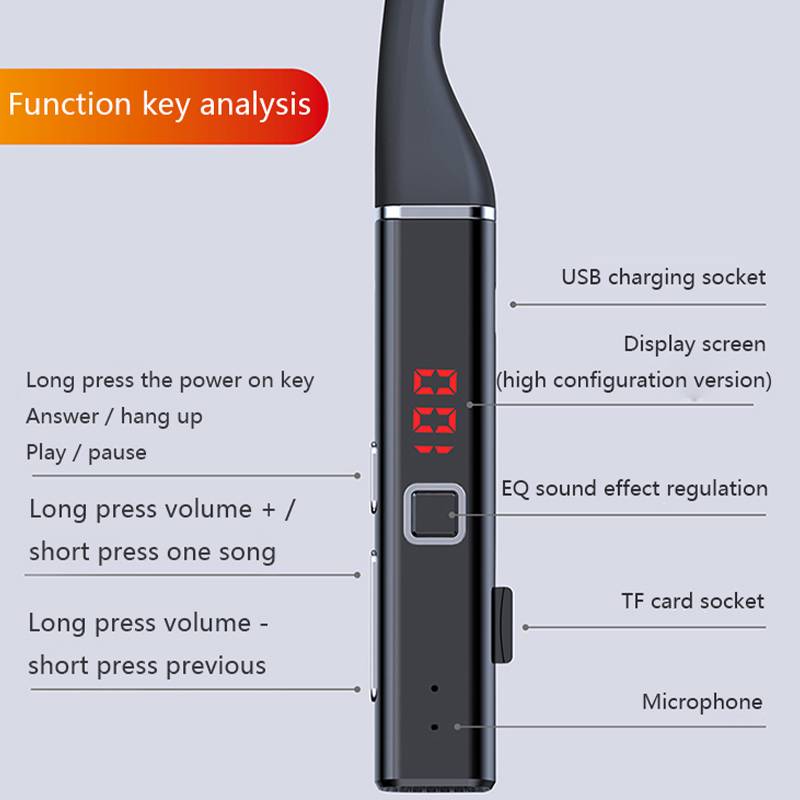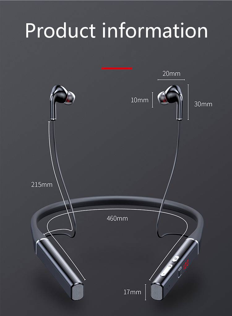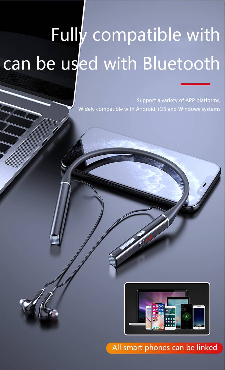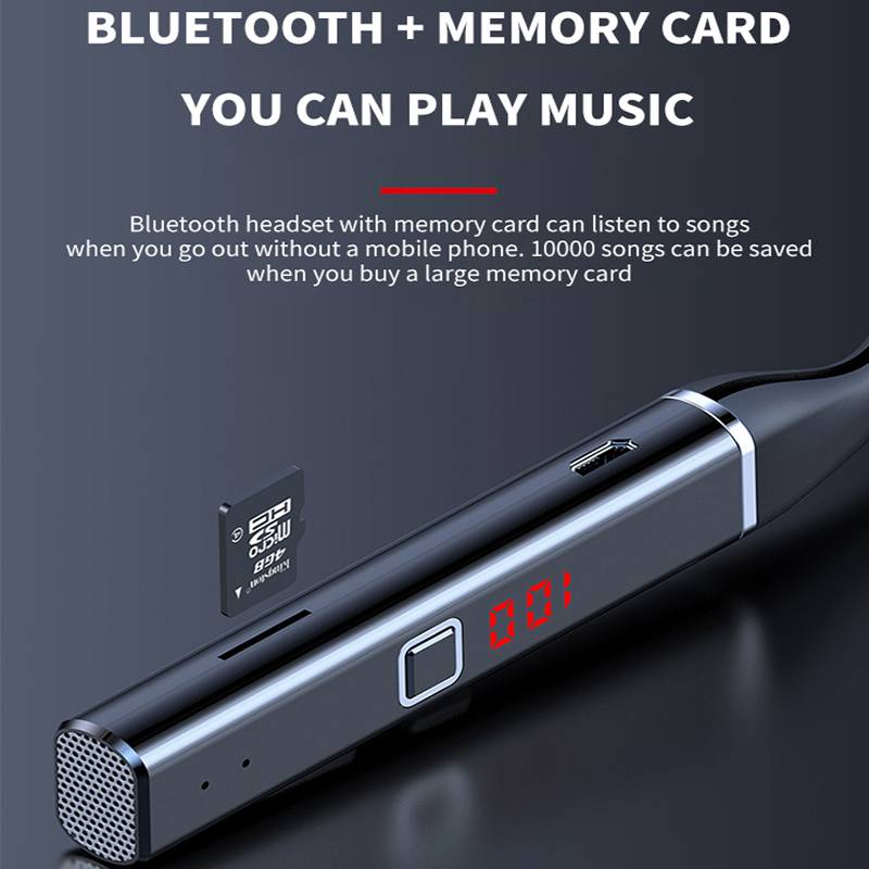 GYM-959 In ear LCD digital display wireless Bluetooth earphones with long battery life and high-quality hanging neck spo