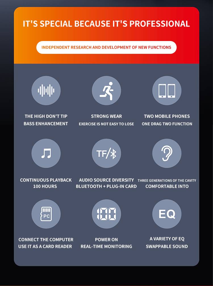 In ear flashlight illumination Bluetooth earphones, three-dimensional high-quality sports earphones