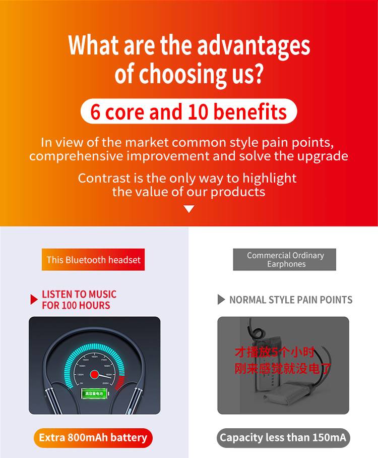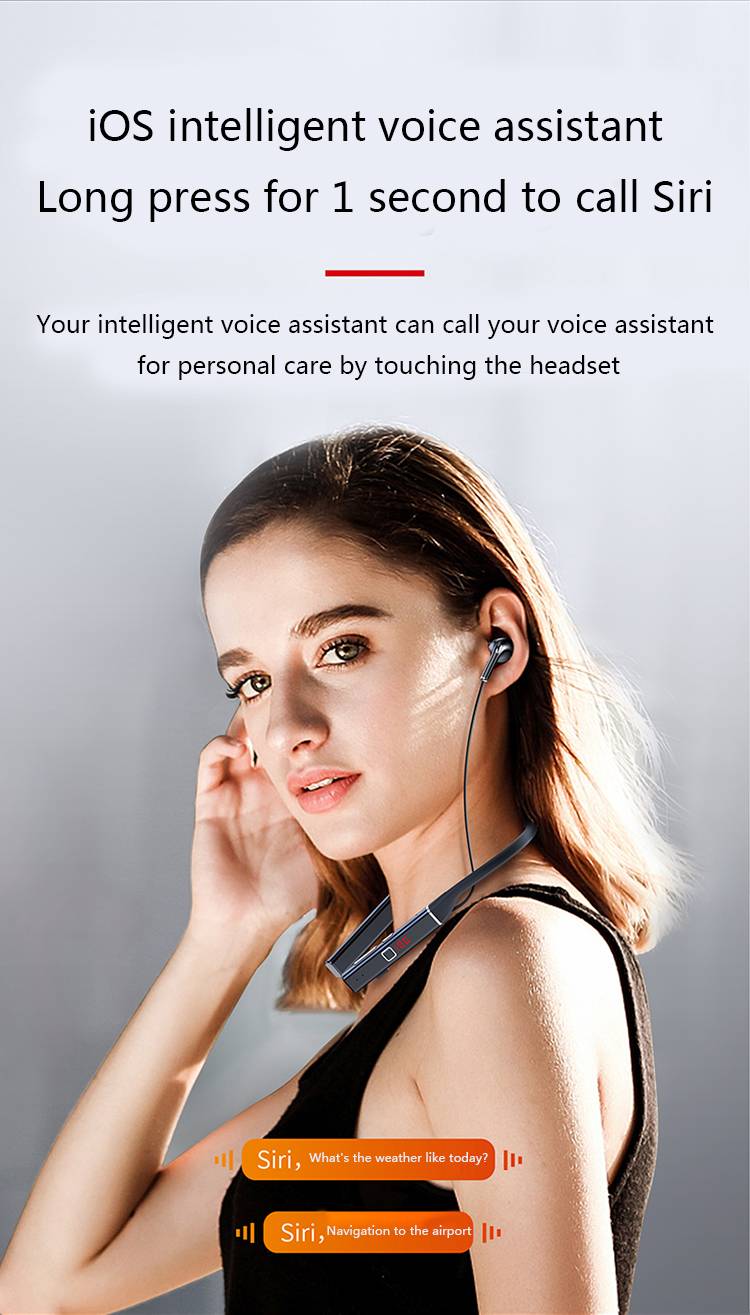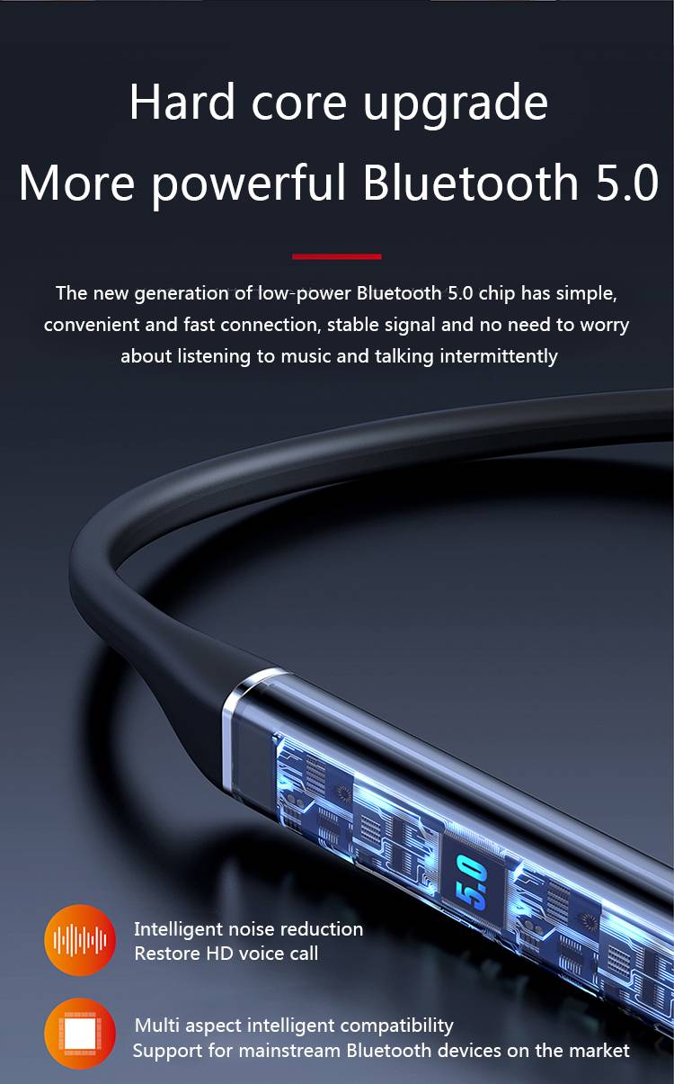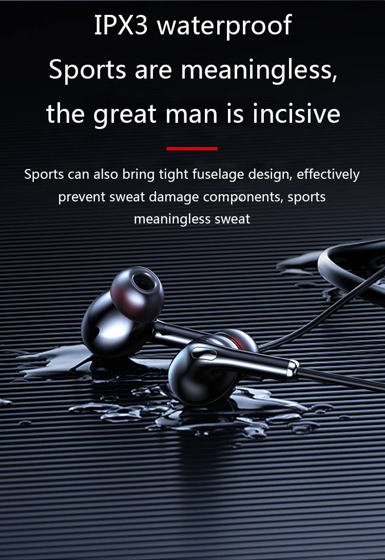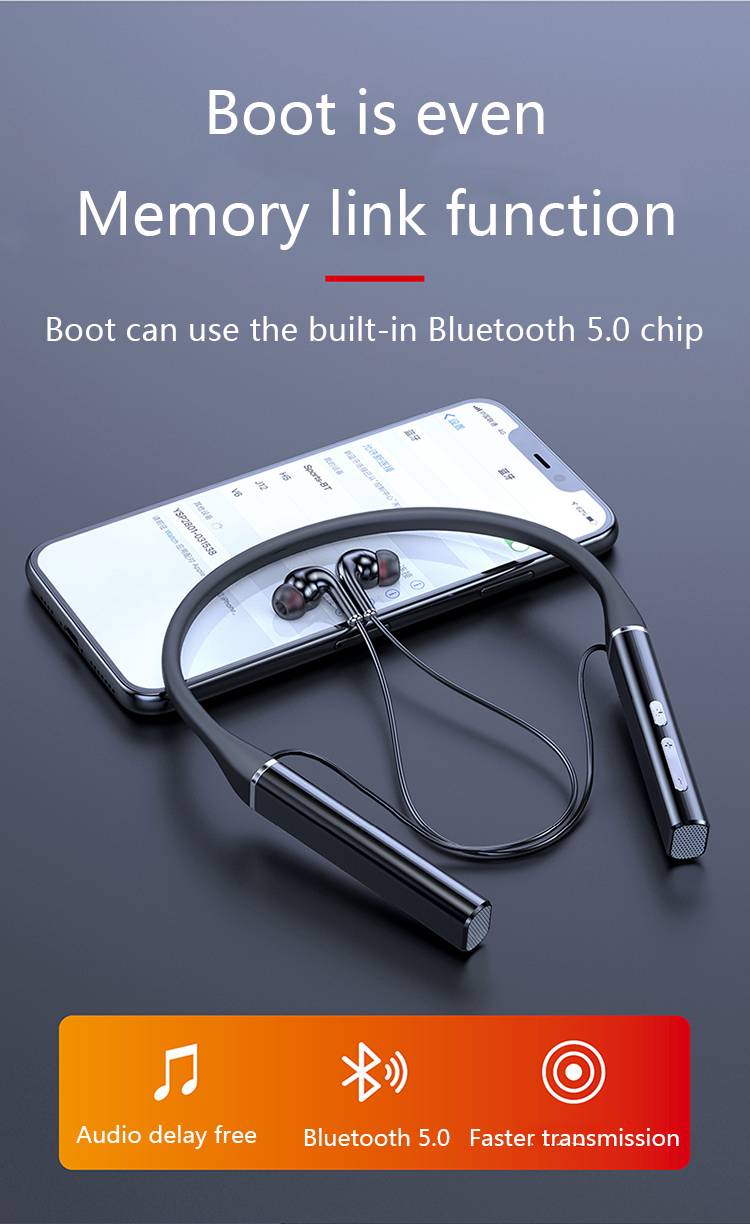 Wireless neckband Bluetooth earphones for sports, with ultra long battery life and large capacity