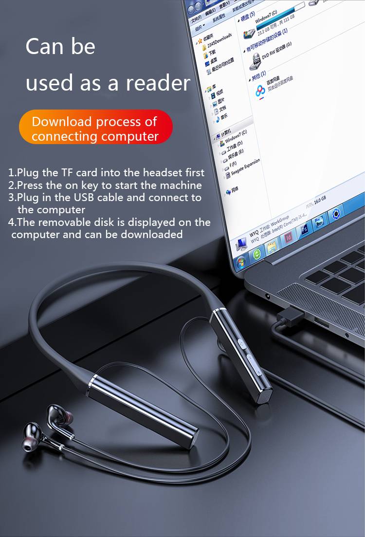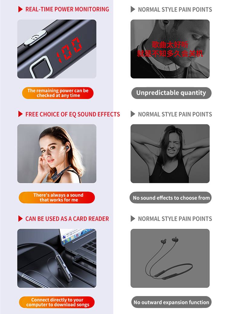 5.3 In ear long range wireless bluetooth rarphones with card Insertion and neck hanging sport earphones