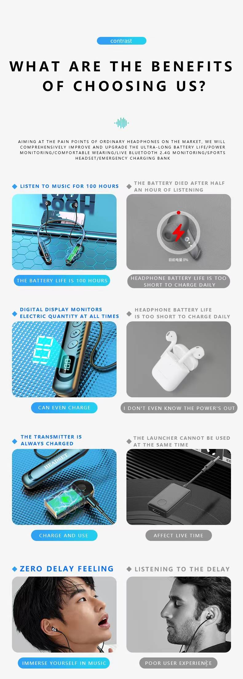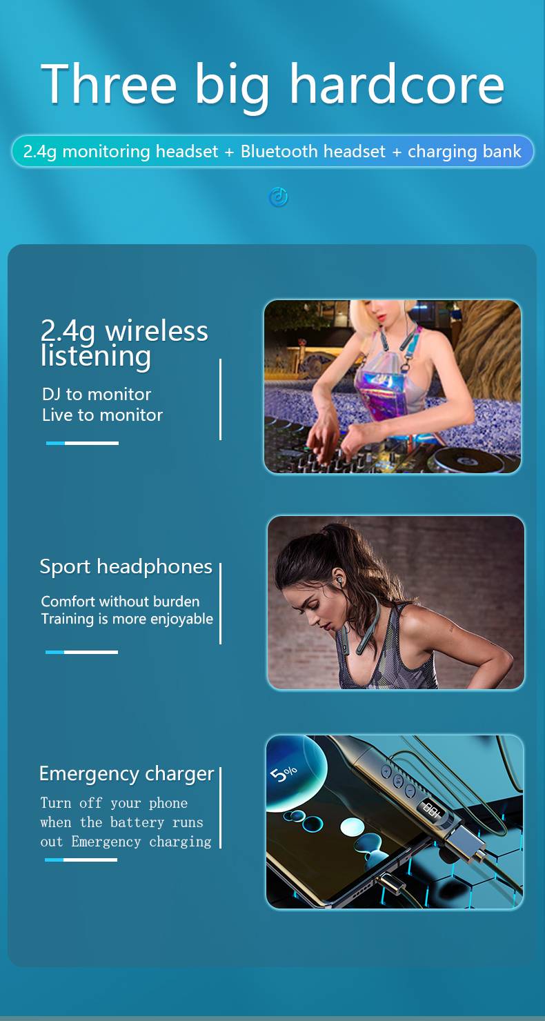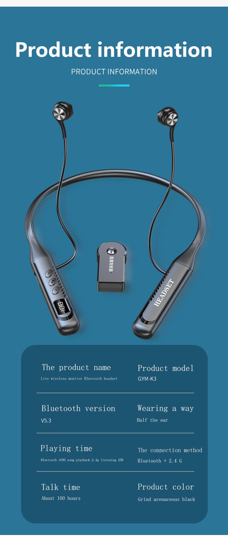 Wireless monitoring live streaming headphones 2.4g live streaming without delay neckband Bluetooth headphones