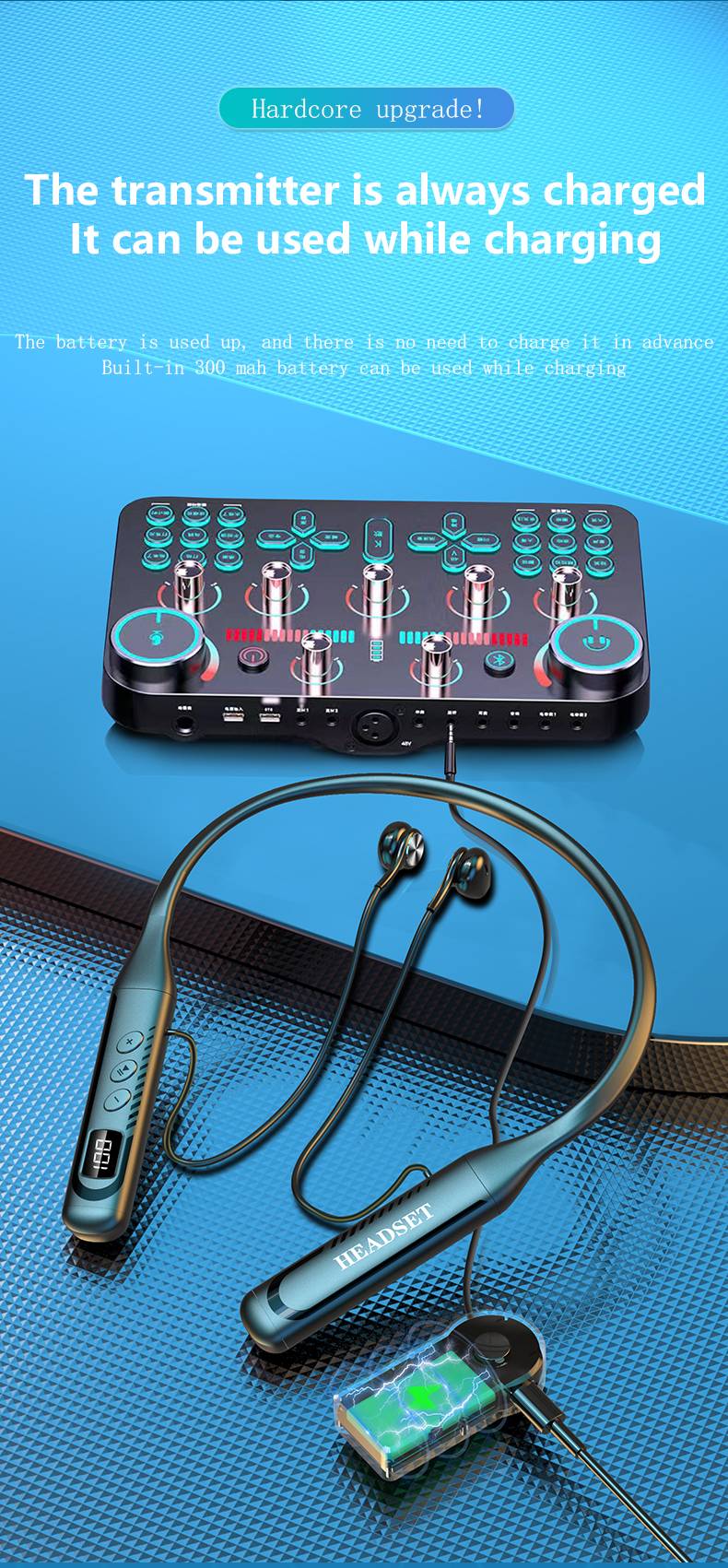 Sound card, wireless Bluetooth earphones, live streaming, ear return, outdoor karaoke, neck hanging style