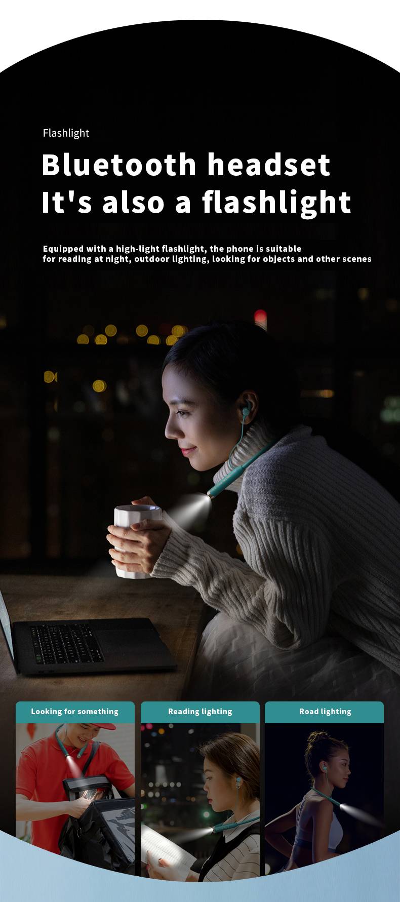 In ear flashlight illumination Bluetooth earphones, three-dimensional high-quality sports earphones