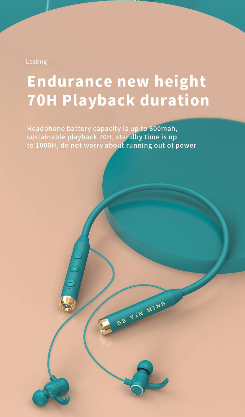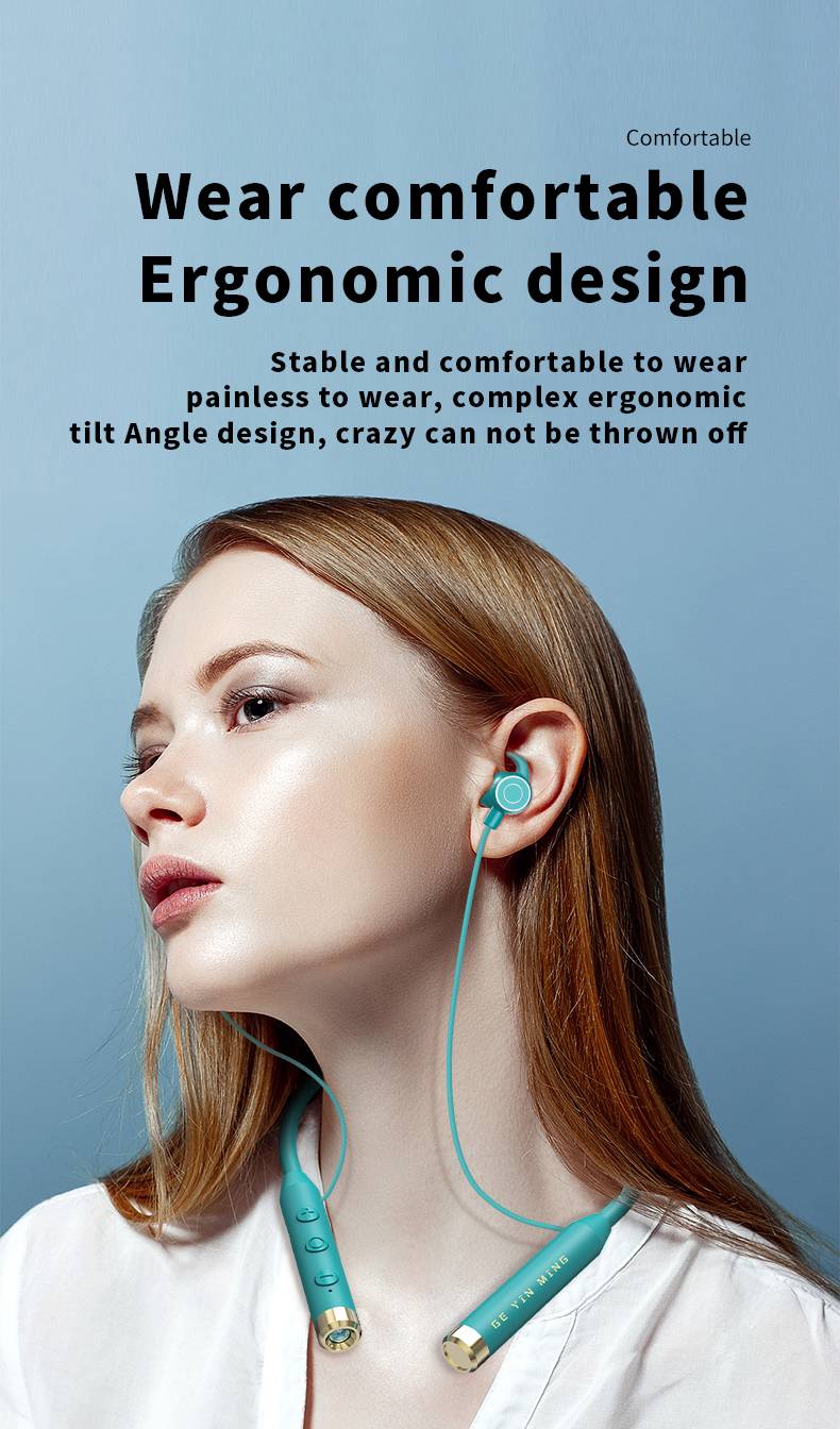 Stereo sound quality, high battery, neck hanging Bluetooth earphones Y9J in ear/Y9R semi in ear