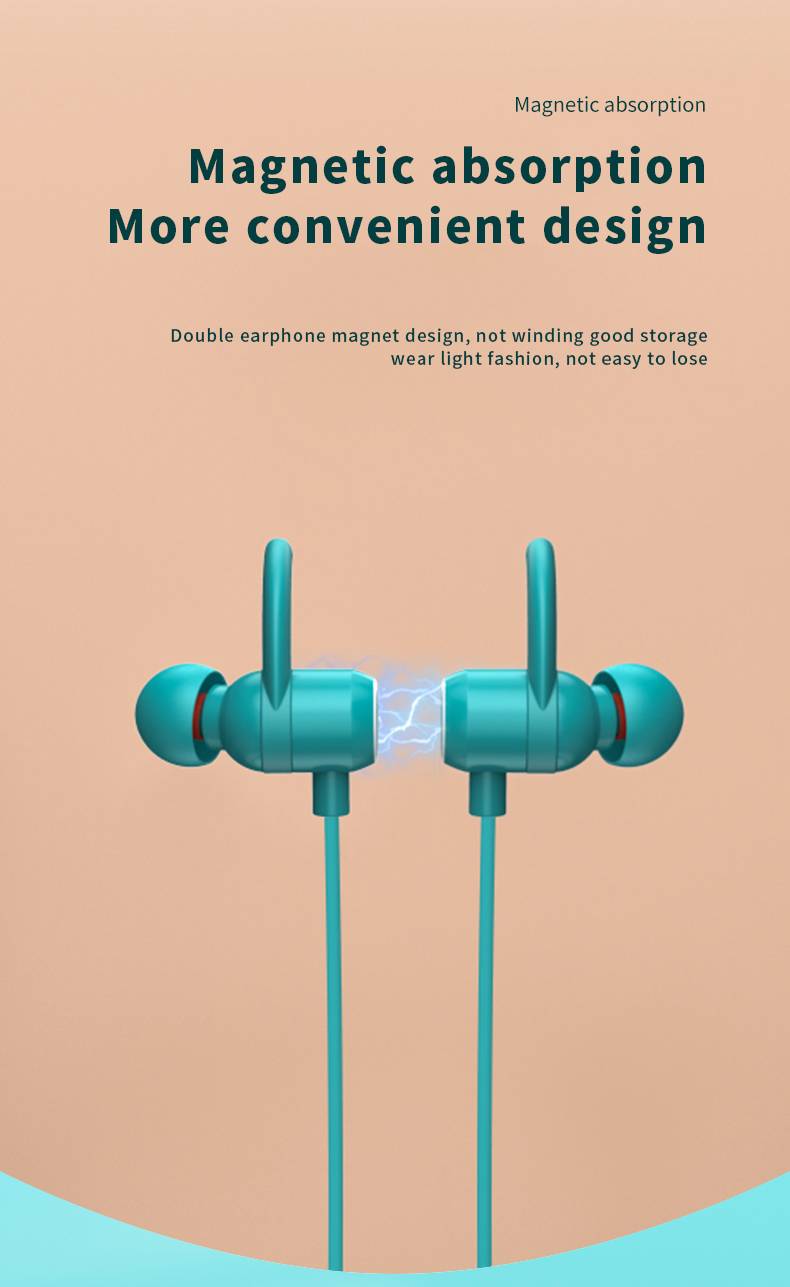 Wireless neckband Bluetooth earphones for sports, with ultra long battery life and large capacity