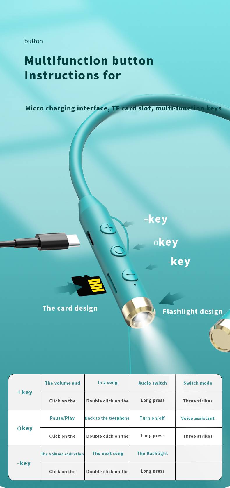 Sound card, wireless Bluetooth earphones, live streaming, ear return, outdoor karaoke, neck hanging style