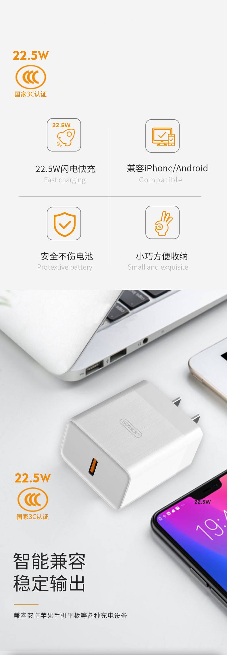 1 .22.5W兼容华为40W安卓/苹果Type-C套装