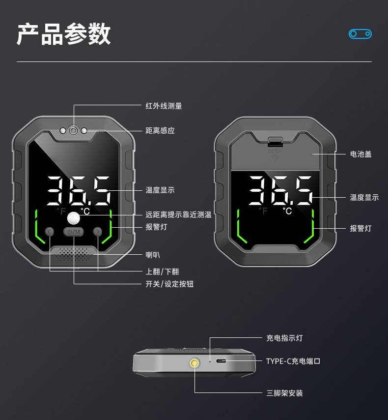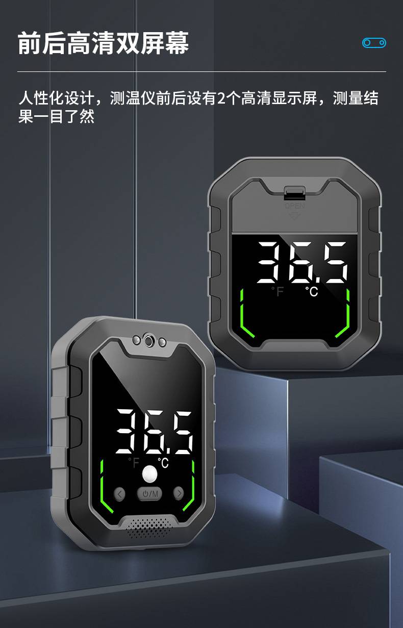 K3F非接触式体温器电子测温机红外线额温显示报警壁挂式测温仪