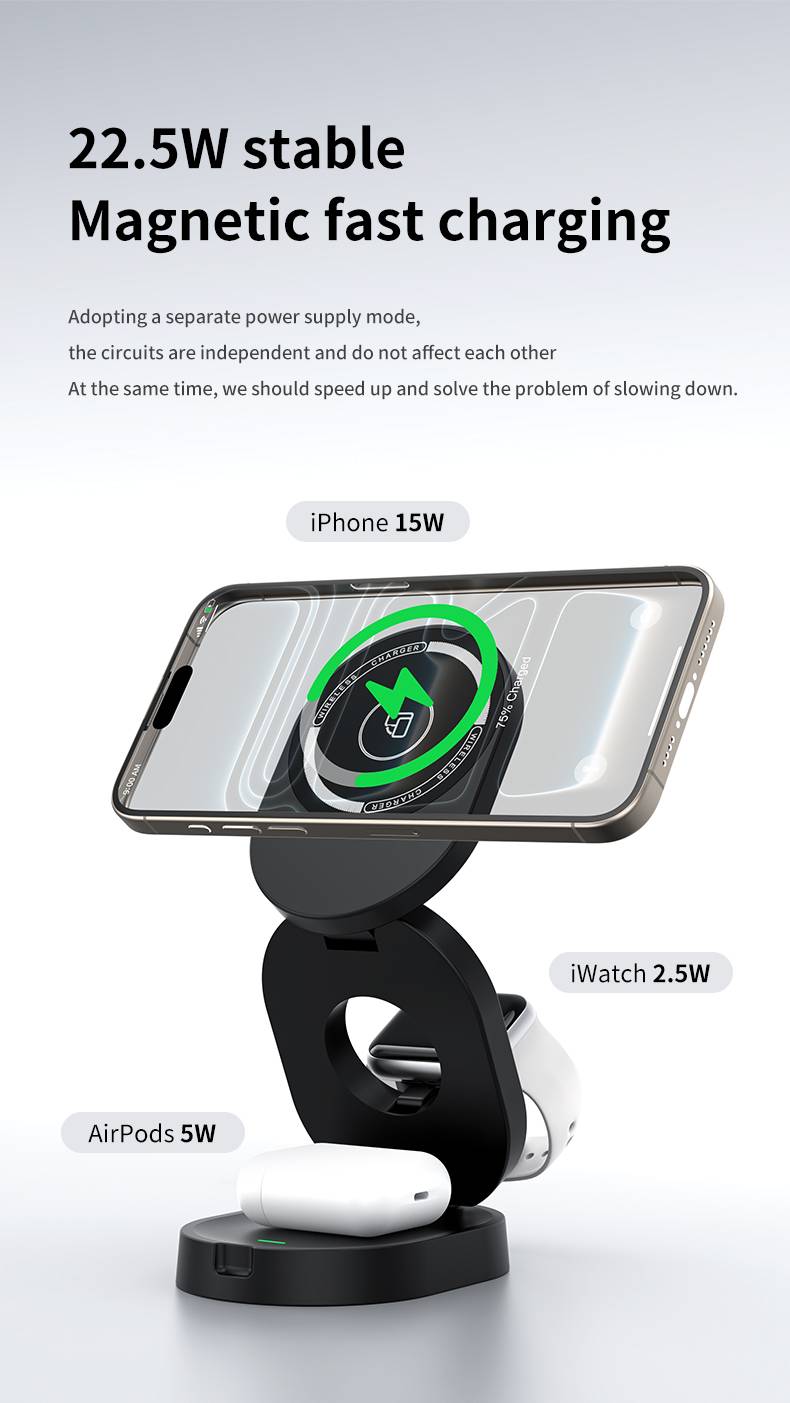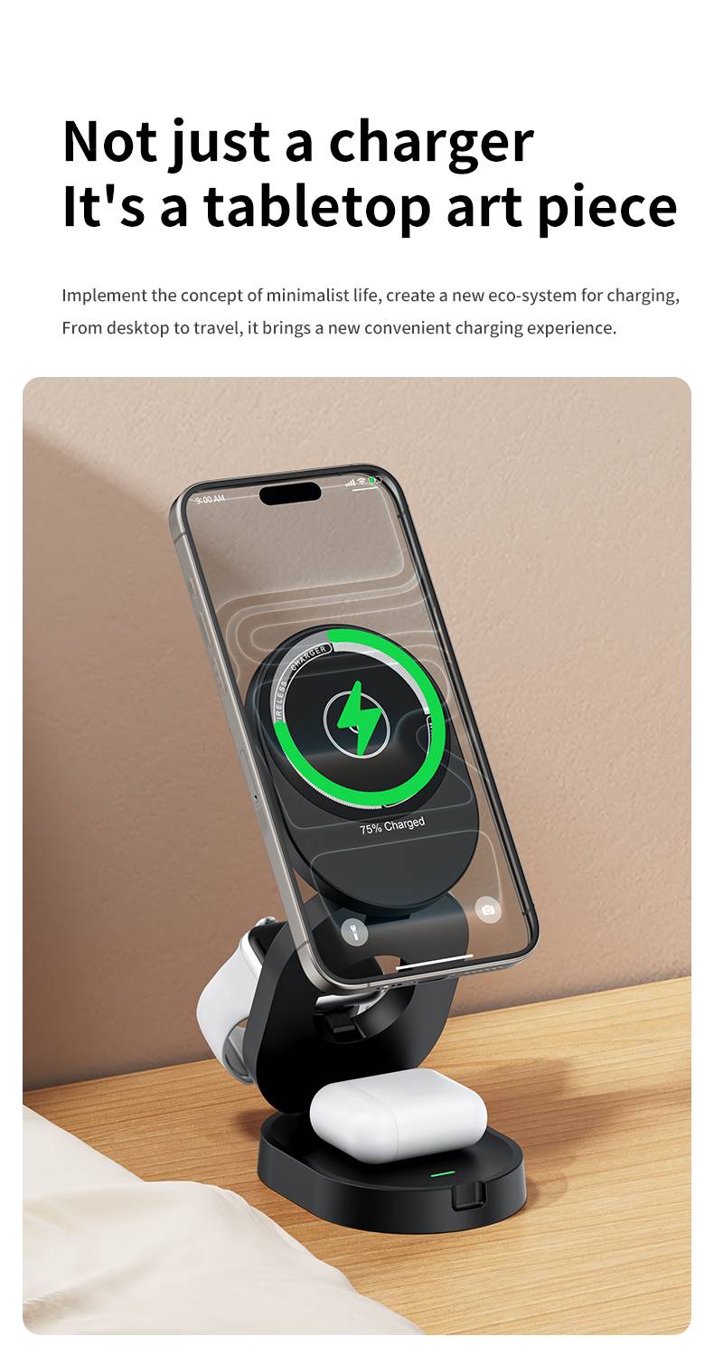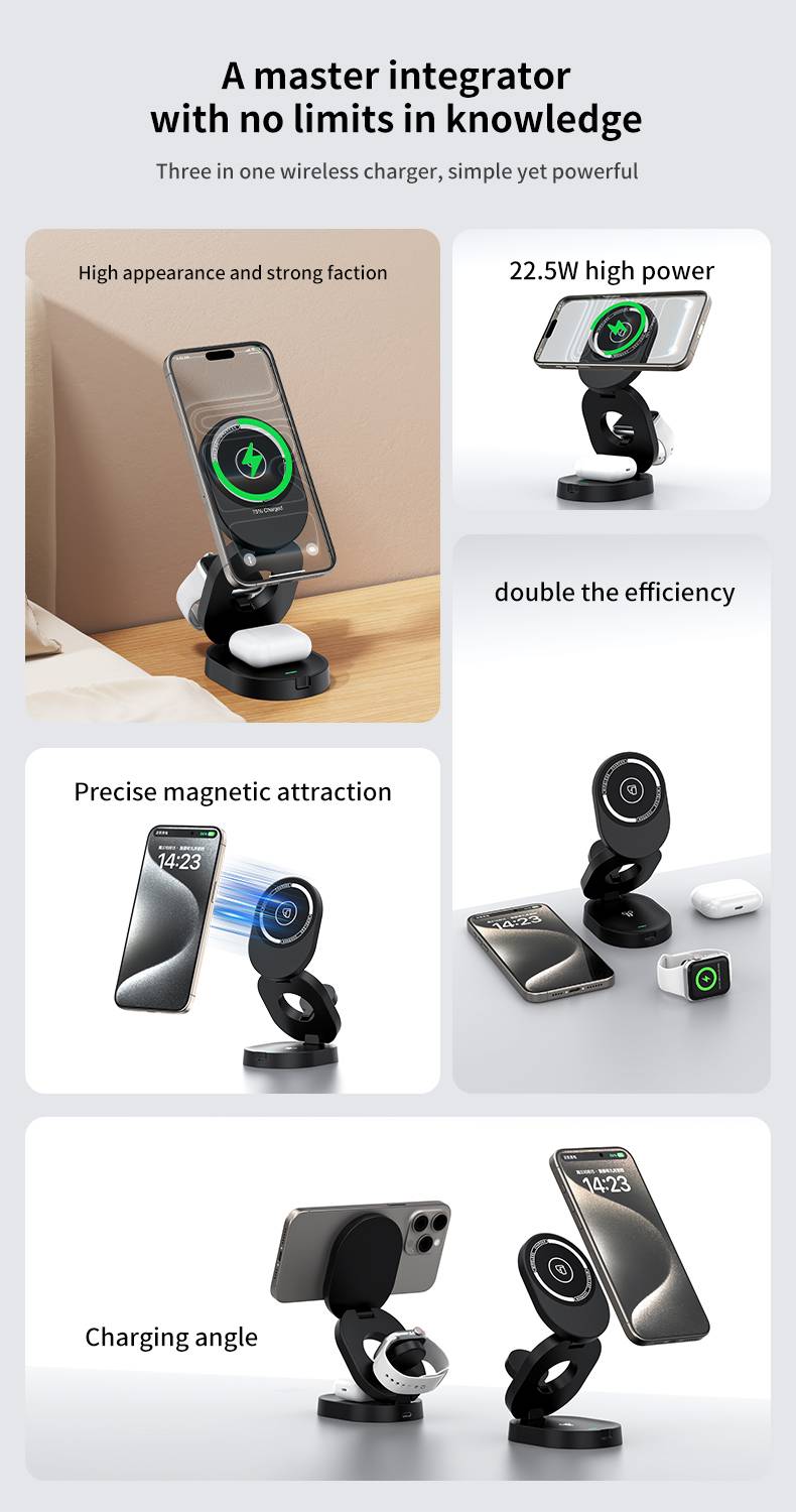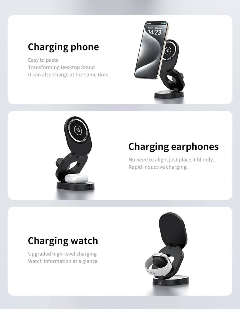 H49 magnetic three in one wireless charger