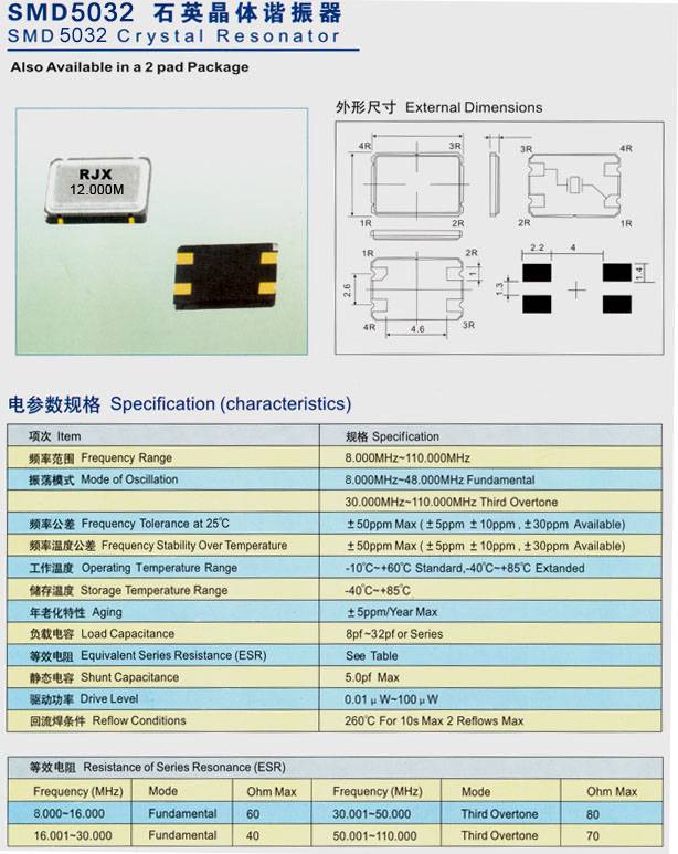锐晶星 SMD5032石英晶体谐振器