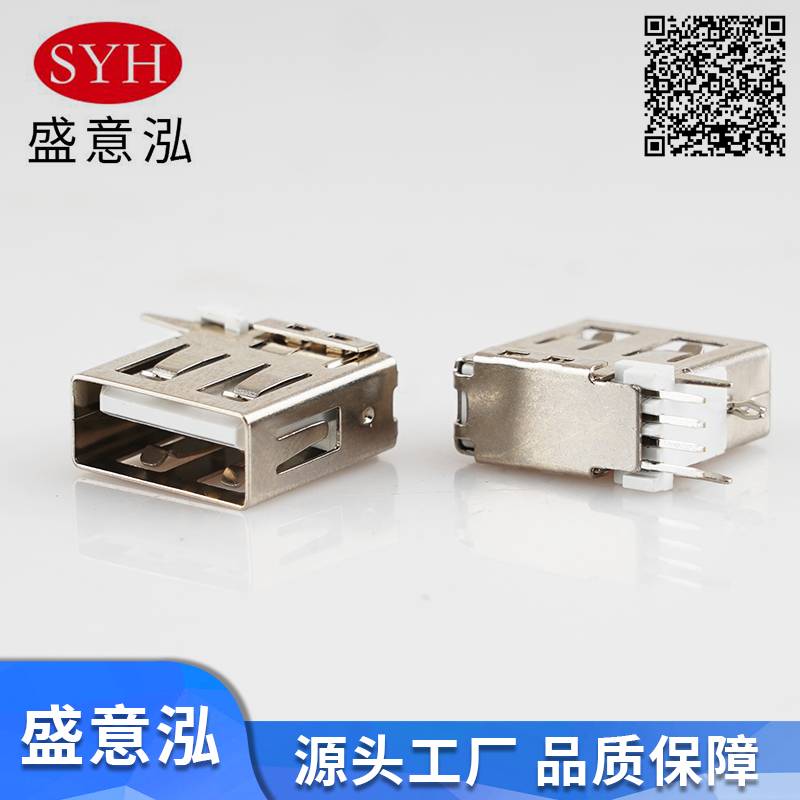 10.0直插大电流短体USB母座加宽端子电流3A/5A 有边无边鱼叉脚USB连接器