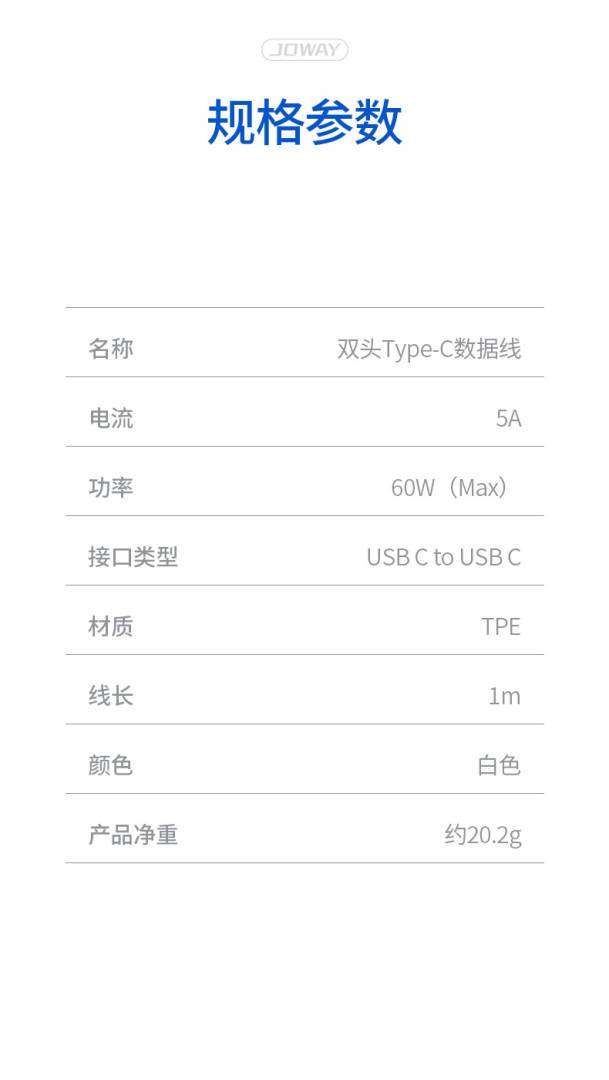 乔威乔威TC163 双头Type-C数据线 5A充电线快速充电