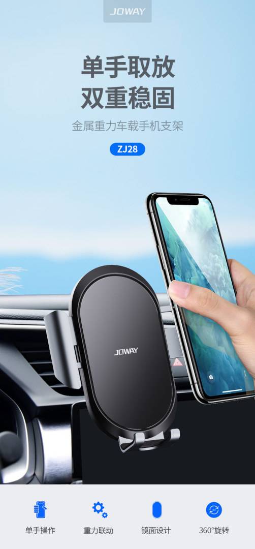 乔威ZJ28车载支架金属重力车载手机支架