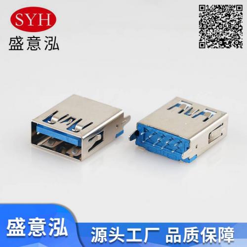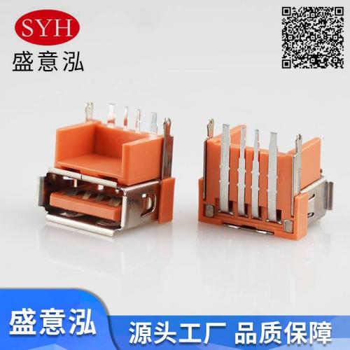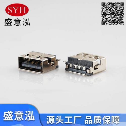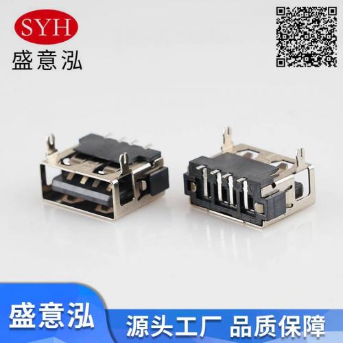 10.0直插大电流短体USB母座加宽端子电流3A/5A 有边无边鱼叉脚USB连接器