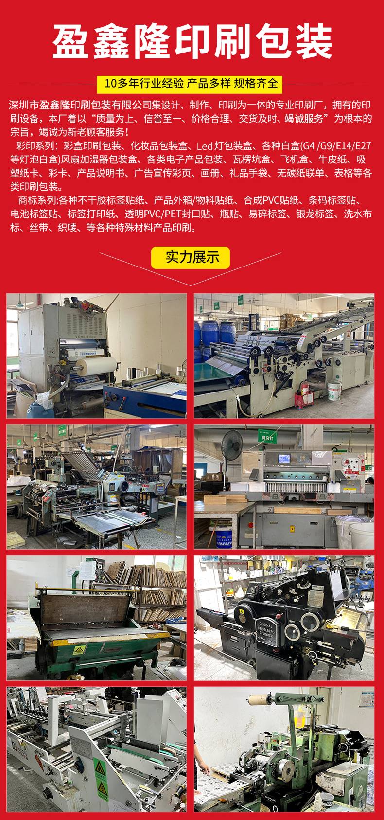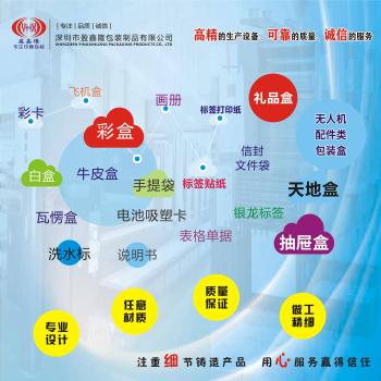 抽屉盒·礼品盒、天地盒、抽屉盒 牛皮纸 盒、白盒、彩卡、产品说明书、宣传彩页、画册、手 袋、表单及各类不干胶标签贴纸、电池标签贴、标签 打印纸、易碎标、银龙标签、洗水布标丝带。 ( 包装盒广泛用于电子类包装、玩具类包装、化妆品类包装、FPV无人机配件包装盒、电商公司等各行业需求包装……)等业务。