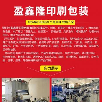 深圳市盈鑫隆印刷厂是一家集设计、印刷、加工为 一体的综合型印刷包装企业,拥有各类印刷加工一条 龙设备。主要承接各类包装彩盒、瓦楞坑盒、飞机盒、