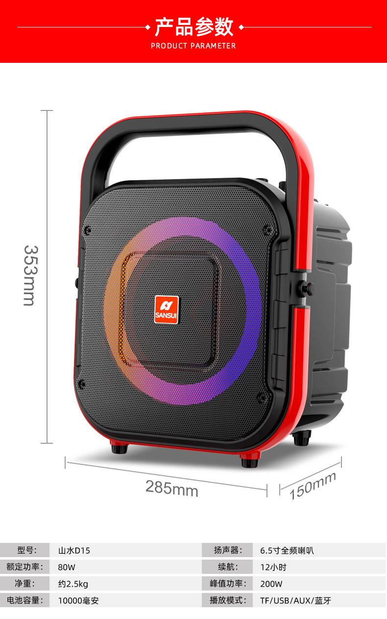 山水D33网红双直播手提音响